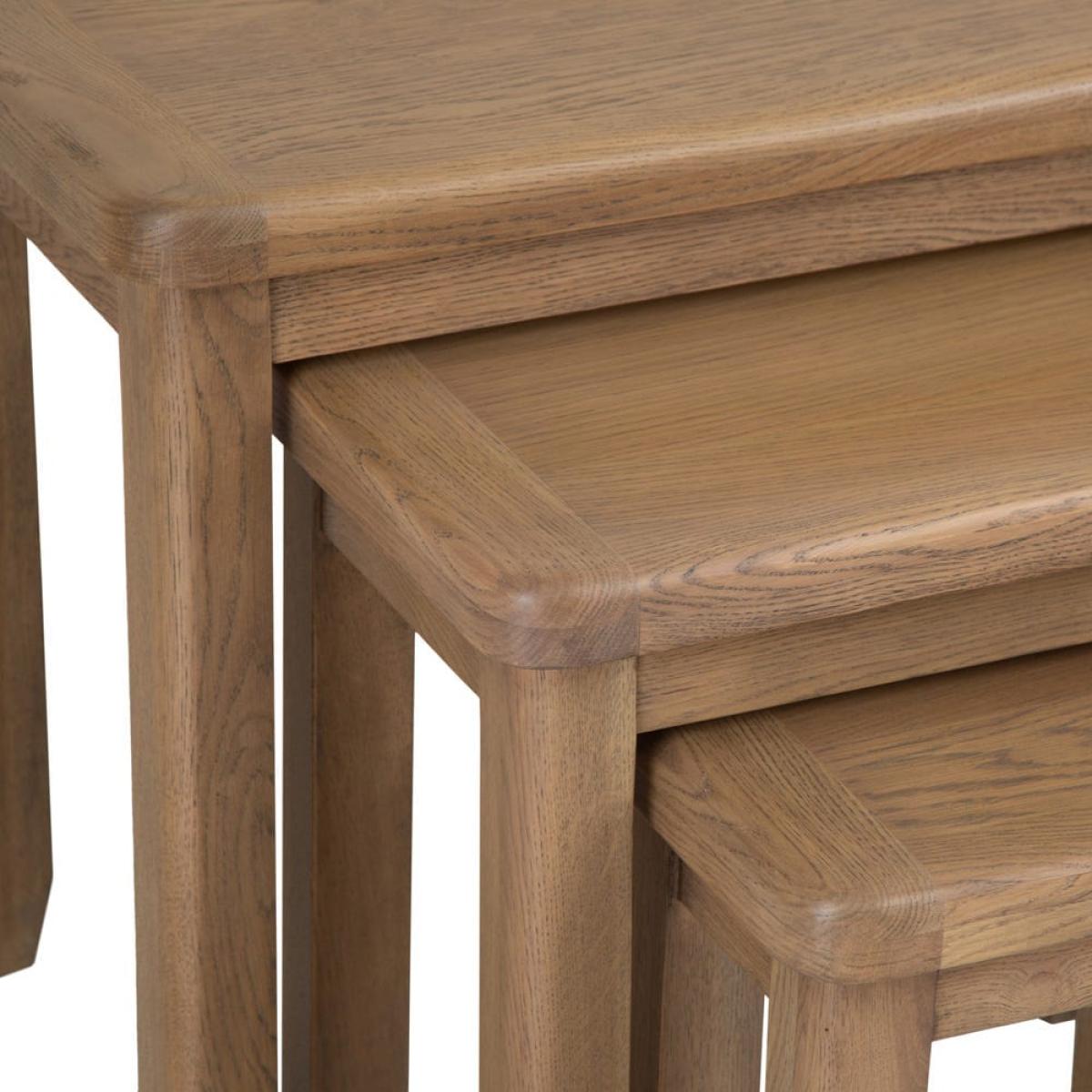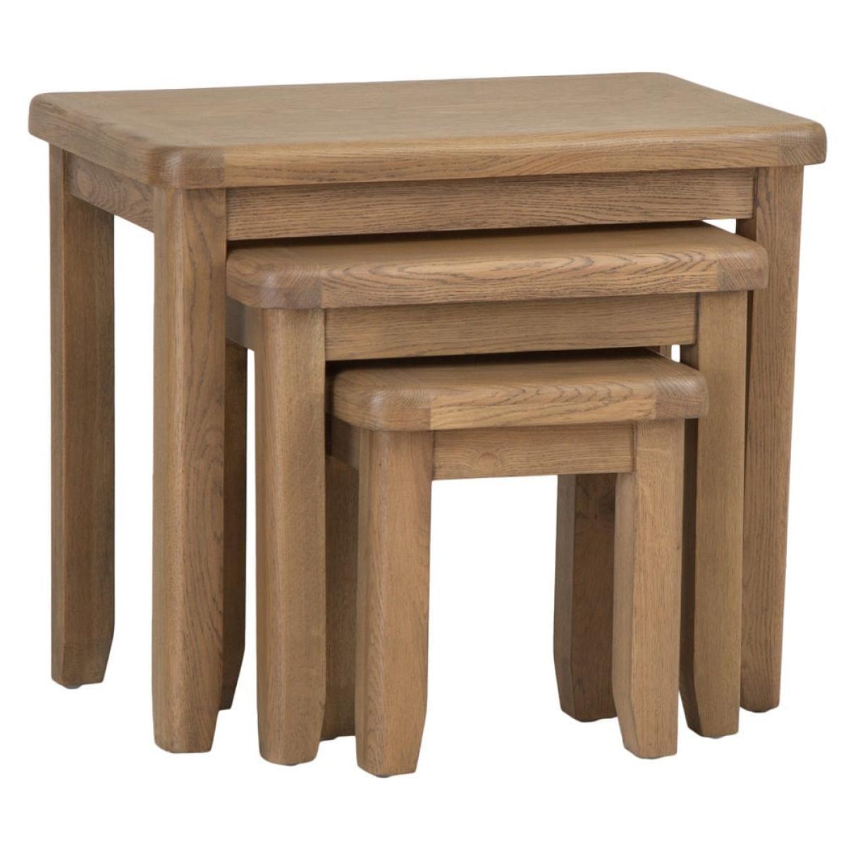 When they’re round for a cuppa, provide your friends with their own mini coffee table when you go for our Wessex smoked oak nest of 3 tables. There are three in this nest: the largest table at 55cm, a medium one at 45. 5cm and the smallest at 35. 5cm. The stack smartly away one under the other when you need to save room, or can be spread throughout your living room when you could use some extra furniture. Their smoked wood finish and solid structure make them an attractive and nostalgic addition to your space.