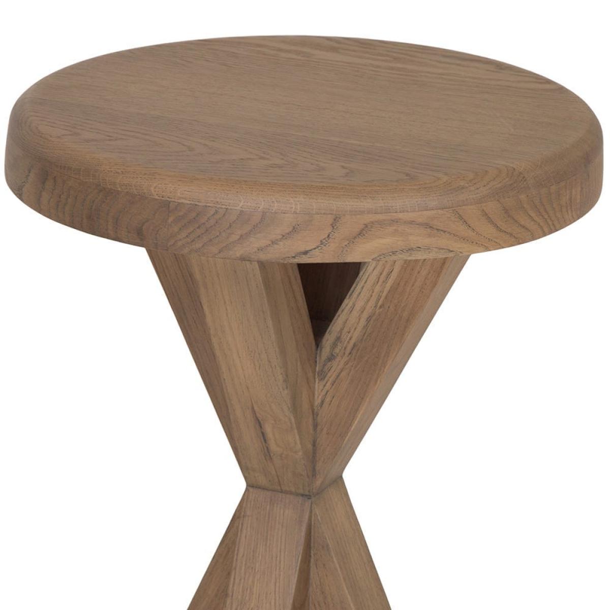 Set down your coffee cup and book on one of our Wessex smoked oak round side tables – and you’ll even have extra space for a soothing candle. At 60cm high, it’ll fit in well next to your sofa or favourite armchair and be within arm’s reach. This side table is a mix of contemporary design and traditional construction. It has a geometric-inspired cross tripod design on the legs that ticks all the trendsetting boxes. Its solid wood design – with a smoked finish and organic grain pattern – is also similar to rustic farmhouse furniture.