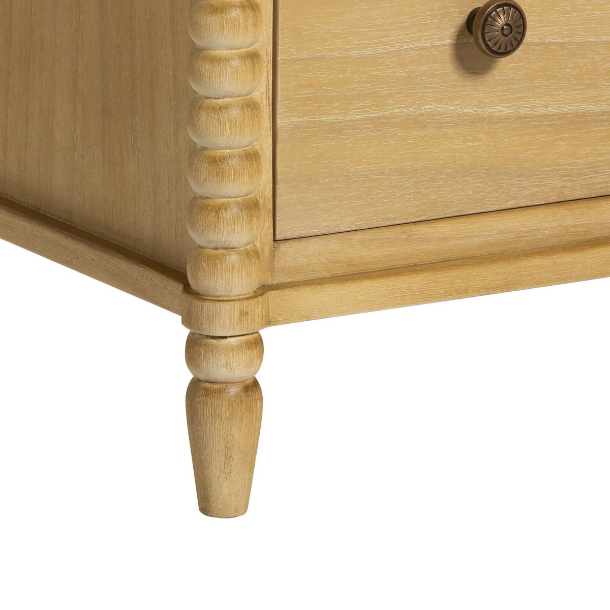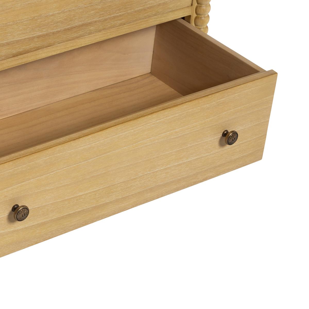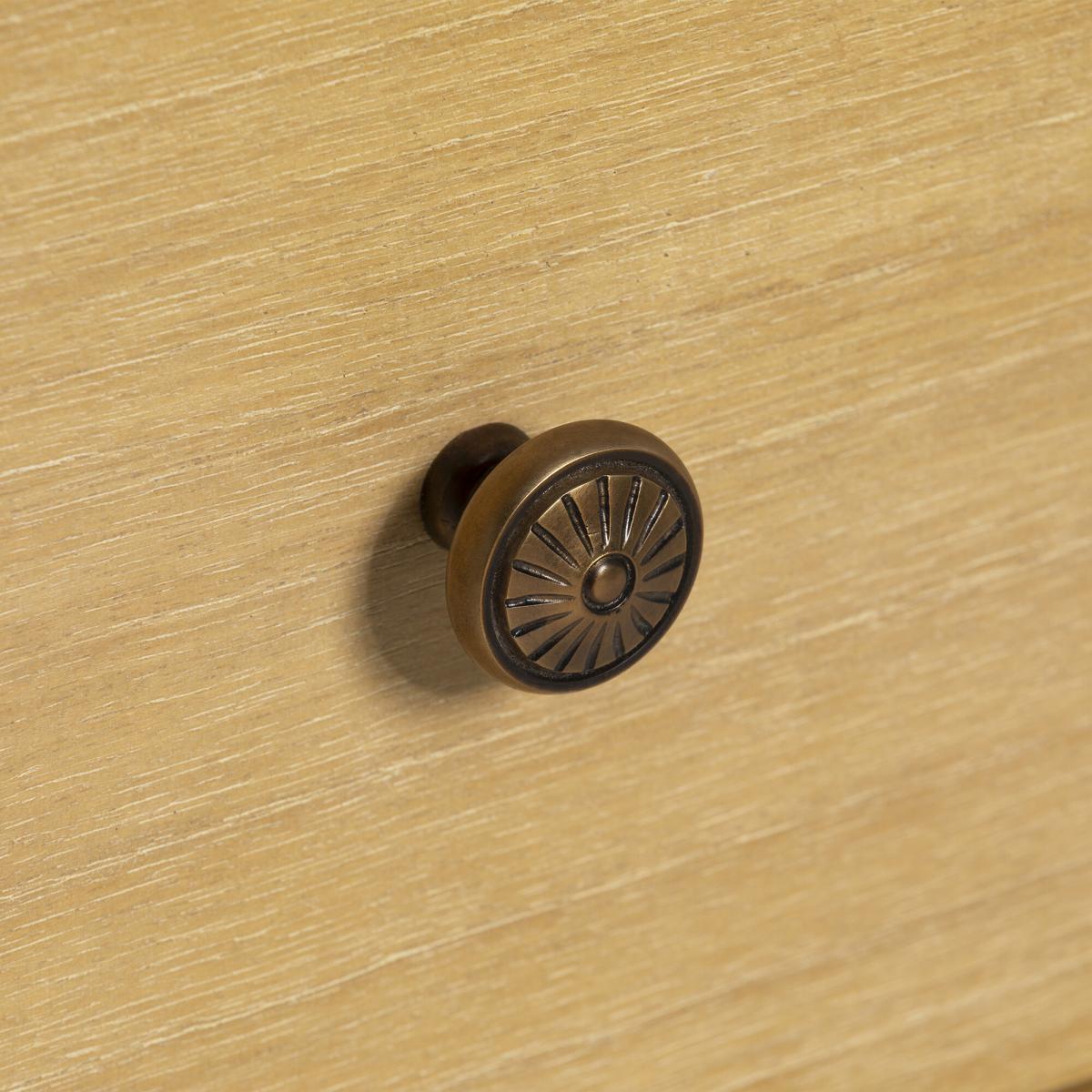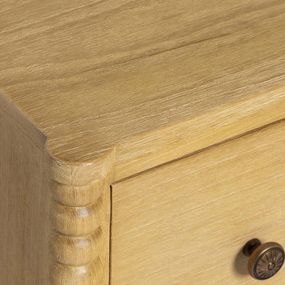 The Mindi Wood 3 Drawer Chest exudes a timeless elegance, seamlessly blending artistry with practicality. Crafted from solid Mindi wood and MDF, it boasts a warm, natural veneer that enriches the room with its sophisticated wood grain and inviting texture. Three ample drawers, adorned with exquisitely engraved metal handles, offer a sanctuary for your treasures, each handles a delicate nod to refined craftsmanship. With its gracefully embossed sides, this piece evokes both strength and beauty, standing as a serene yet striking accent in any space