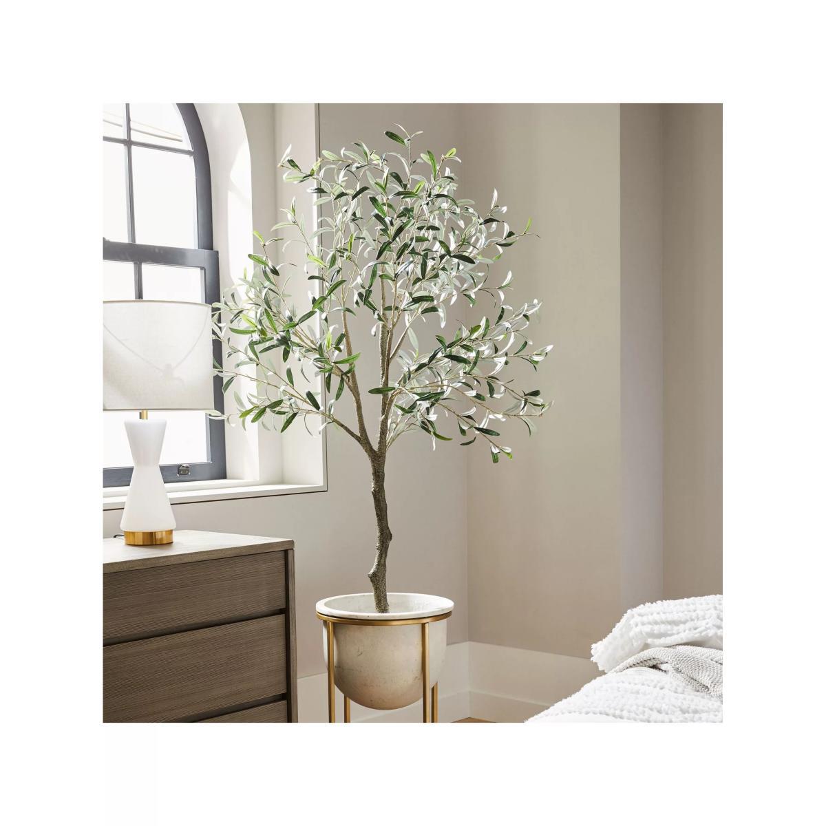 I love the olive tree for its versatility and low-maintenance appeal, making it a great addition to a variety of interiors. It works exceptionally well in living rooms, kitchens, or even bathrooms where natural light is plentiful. Its understated, organic shape adds a touch of greenery without overwhelming the space, making it ideal for both contemporary and rustic styles. For styling tips, place it in a simple planters or in groups with other faux plants to create a lush, layered look. It’s perfect for adding a fresh feel to spaces that lack natural sunlight or during changing seasons when real plants might not thrive.