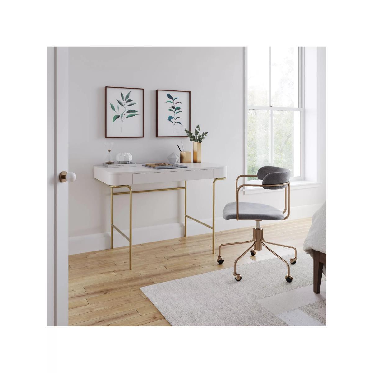 west elm Cecile Desk, Oyster/Antique Brass