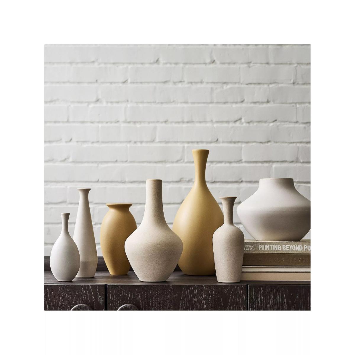 I love this neutral ceramic vase for its versatility and clean design - it seamlessly complements both modern and traditional interiors. Its soft, understated colour and simple shape make it ideal for adding subtle texture to a neutral colour palette or playing a supporting role alongside bolder statement pieces. Practical styling tips include filling it with minimalist single-stem florals or greenery to emphasise its sculptural form, or using it as a standalone decorative piece on shelves or side tables for a calm, organised look. Its size is perfect for creating a focal point without overwhelming the space, making it a reliable choice for a variety of rooms from living areas to bedrooms.