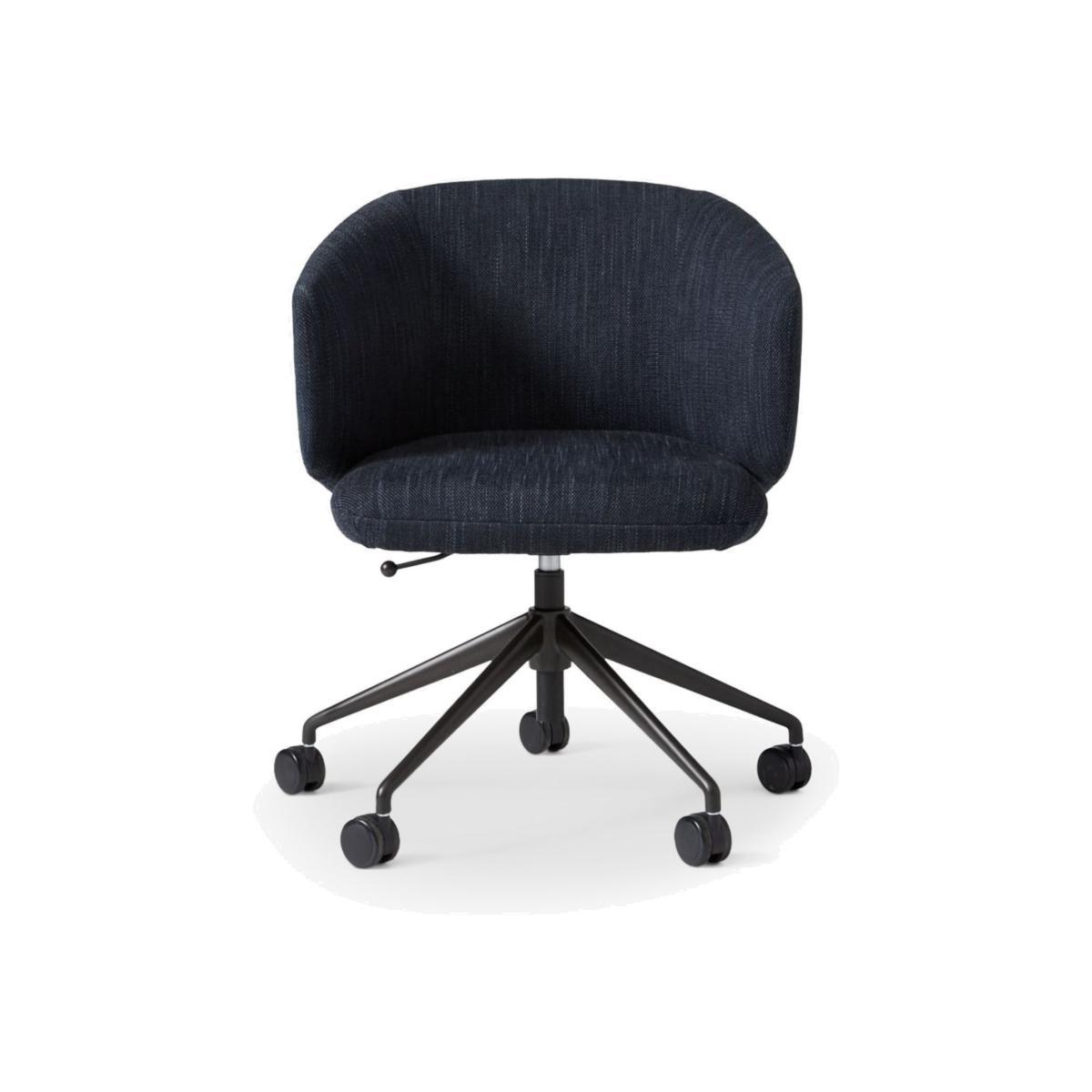 A modern update on the classic drum chair shape, the back and arms of the Crescent swivel chair from west elm wrap around to provide support while you work. This office chair is suitable for short periods of work at your desk and it's height-adjustable to suit each user. Complete with a comfortable, padded seat and sleek metal base. Protect your floor For added protection to your floor and furniture, we recommend using floor pads or mats where possible. Want to see it first? You may want to see and get a feel for the furniture in one of our shops before ordering. We'll be able to tell you where the range you'd like to view is on display.