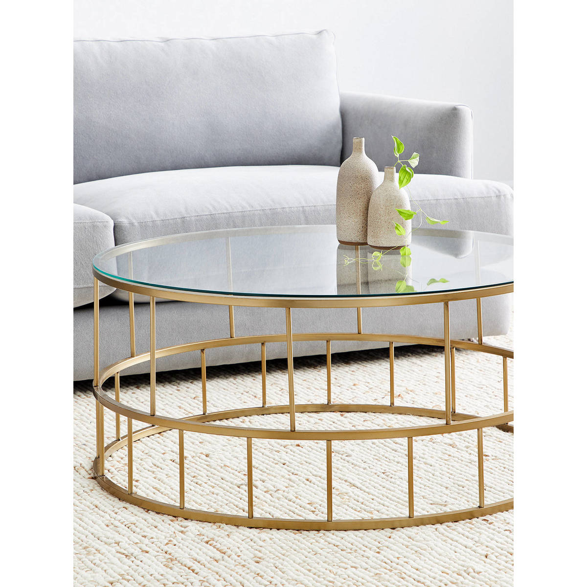 With its minimalist frame and robust glass surface top, the Deco coffee table from west elm will make an impressive centre-piece in your living space. Its rounded profile is crafted from metal into a lattice-style silhouette and topped with a thick layer of clear glass.