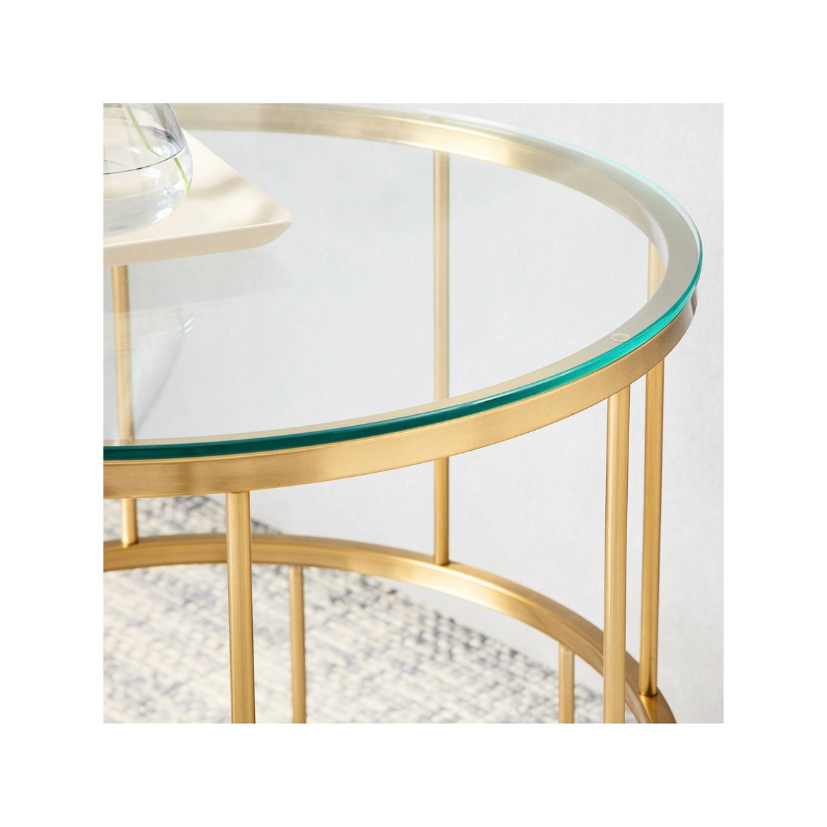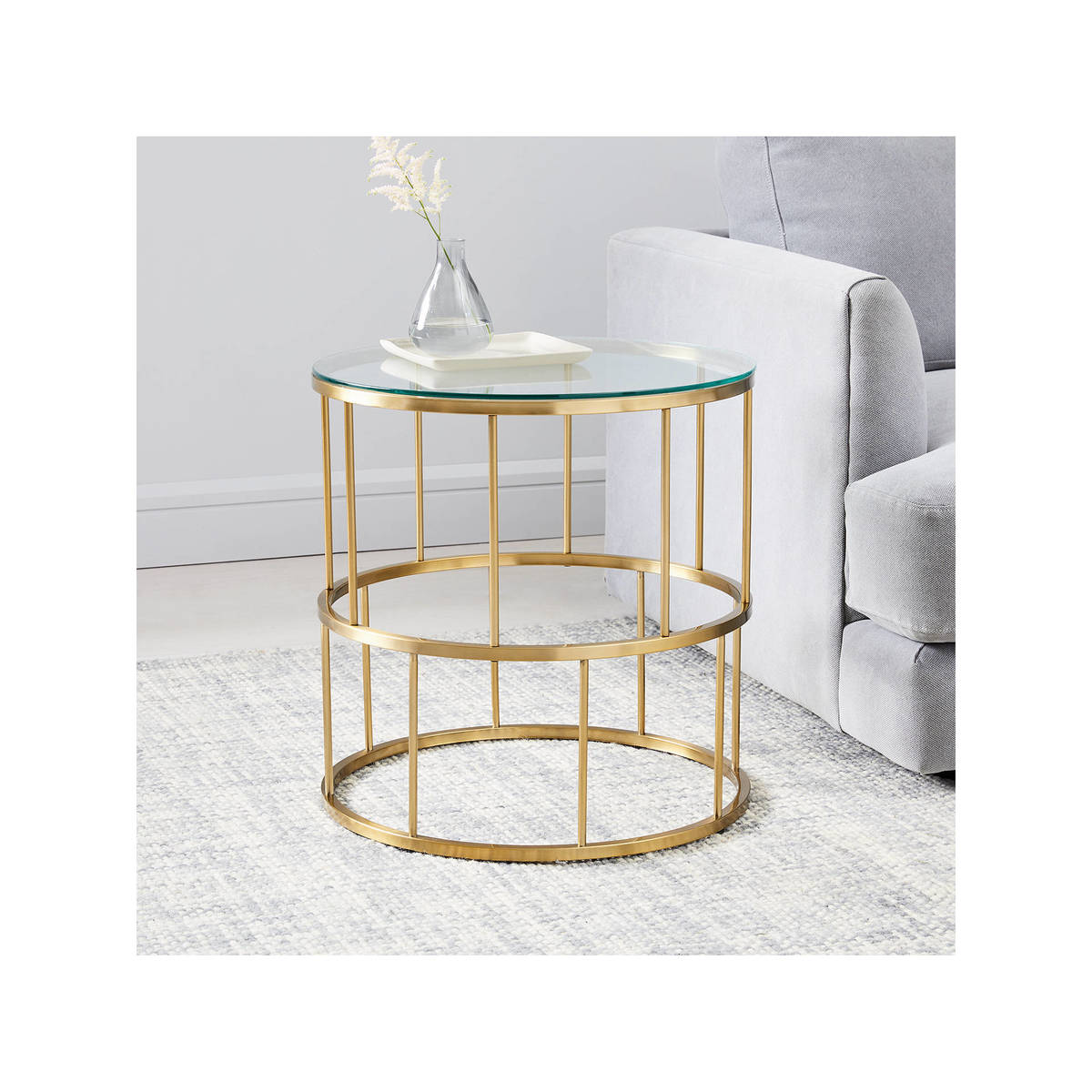 With its minimalist, rounded profile, the Deco side table from west elm is designed with a thick, tempered glass surface top. Its metal frame, that has an antique-brass finish, is crafted into a lattice-style silhouette, creating a bold, art-deco inspired style.
