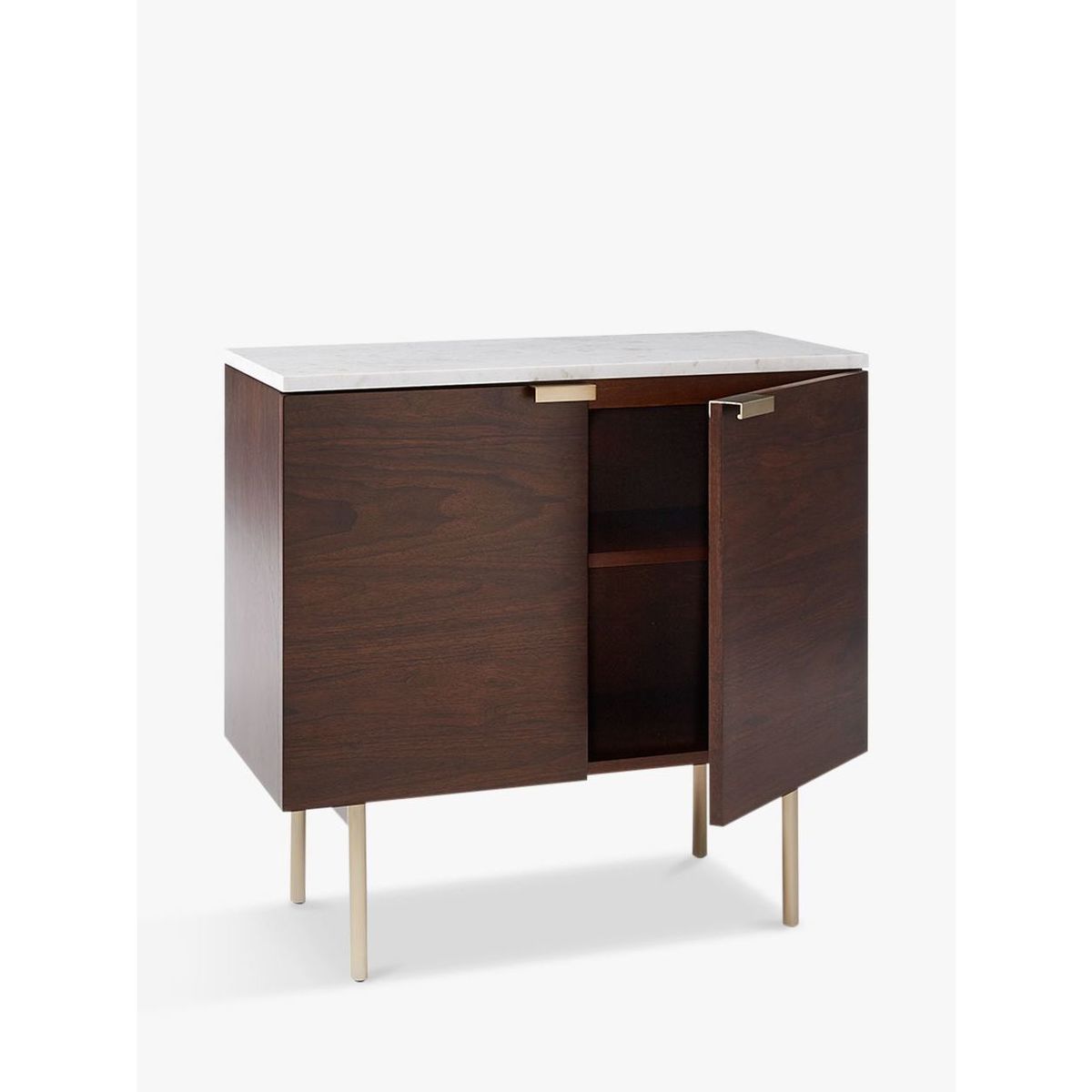 The Delphine console table from west elm offers storage and style for your living spaces. Its wooden profile houses internal shelving, while a solid marble top lends a premium finish. Complemented with metal legs and handles in a light brushed bronze finish, it will fit seamlessly into modern or art-deco inspired settings. Versatile for hallways or living rooms, keep your essentials neatly in order and display your best home accessories. Made in a Fairtrade Certified™ facility. Responsibly made to leave a positive impact on Fairtrade workers and their communities. Good to know: This contract-grade sideboard is robust enough to meet commercial as well as residential needs. Want to see it first?. You may want to see and get a feel for the furniture in one of our shops before ordering. If you do plan on doing this we recommend giving us a call on 03452 661805 as not all our ranges are on display in our shops. We'll be able to tell you where the range you'd like to view is on display.