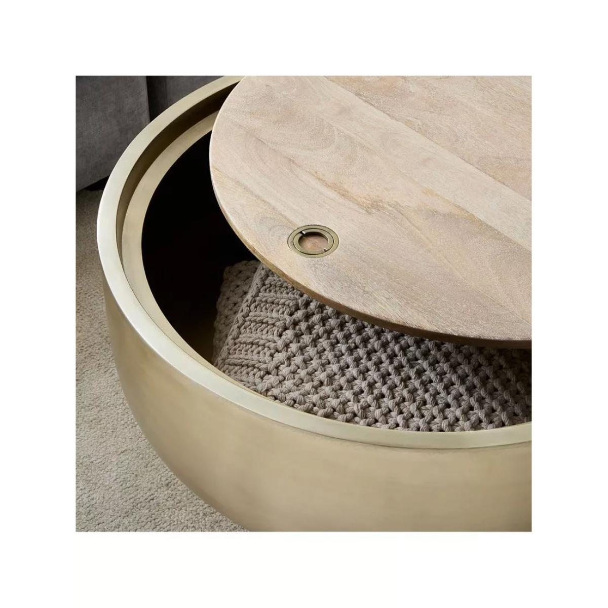 What's hiding inside this table? Plenty of storage for anything you want to keep within reach but out of sight. Just use the handy finger cut-out to lift off the wooden top and stash away odds and ends. Table with hidden storage to stash away odds and ends. Handy finger cut-outs for easy lifting Top made from sustainably sourced solid mango wood n a Cafe finish Unlined interior storage space Crafted in a Fair Trade Certified™ facility, empowering workers who made it Due to the materials used, slight pitting is to be expected