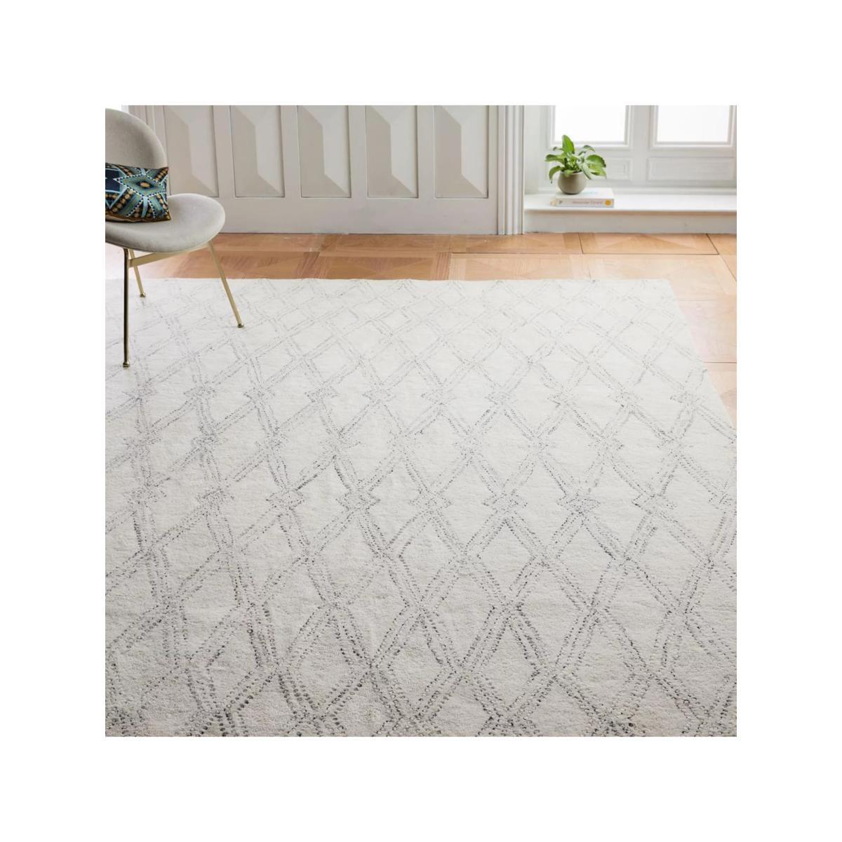 West elm's Hazy Lattice Rug offers the look of a Moroccan-inspired pattern but in durable wool. With its neutral palette and lovely matte finish, this is a beautiful addition to any room. Each rug is made in a Fair Trade Certified facility. This rug is tufted by hand, meaning that wool is injected into the back of the rug with a tufting gun, holding the wool firmly in place. About your new rug We recommend. It prevents your rug from moving underfoot and protects against colour transfer to the floor Natural fibres may shed. This will reduce over time and will not affect your rug's performance. Vacuum clean regularly to reduce the shedding. When vacuuming your rug, use suction only. Rotating brushes may damage the fibres Blot any spills with a clean, dry cloth. Do not rub or use harsh detergents. Latex backed therefore not suitable for underfloor heating. Specialist cleaning recommended.