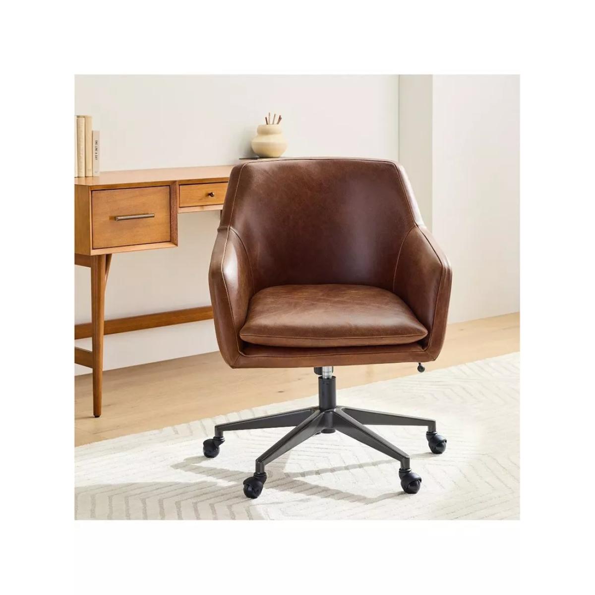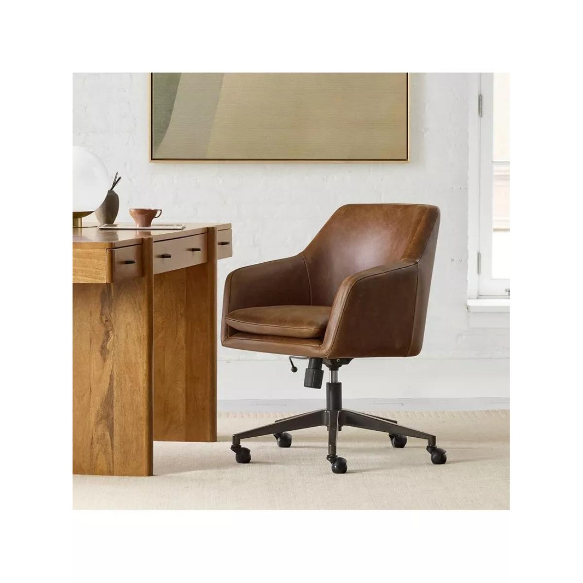 west elm Helvetica Leather Swivel Office Chair, Brown