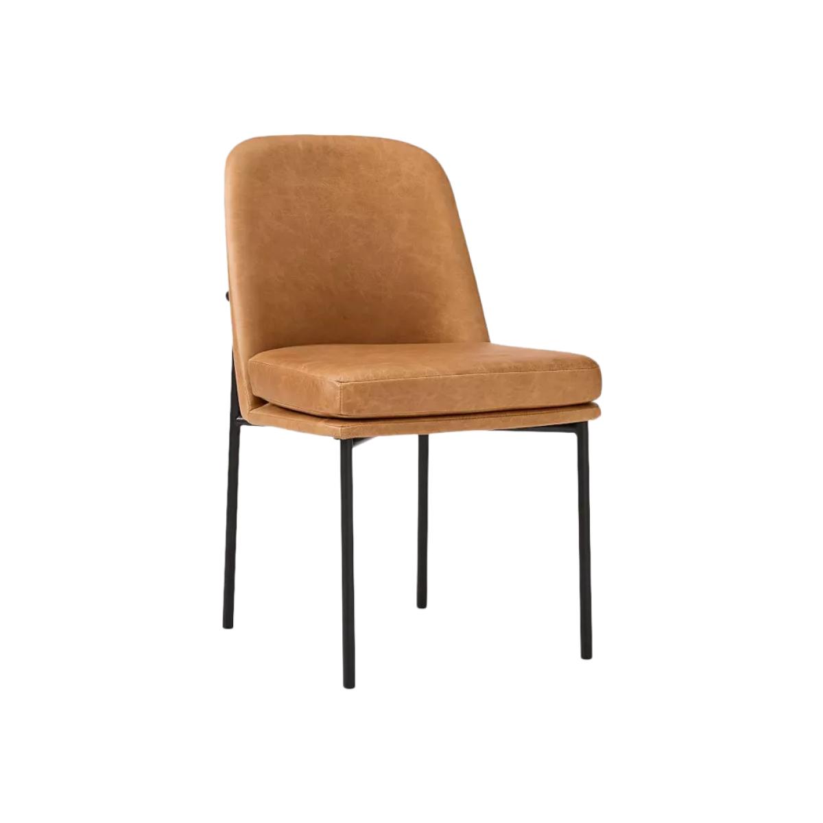 I really rate the Jack chair for its clean silhouette and warm tan leather seat paired with a slim black metal frame. It’s hard-wearing yet comfortable, so it sits neatly in a busy family dining room or a minimal home office. This style works particularly well in industrial-inspired lofts, Scandi schemes or even mid-century modern spaces. Try pairing it with a reclaimed oak table and deep-pile rug to soften the metal legs, or add a textured linen cushion in muted tones for a bit of extra comfort and visual interest.