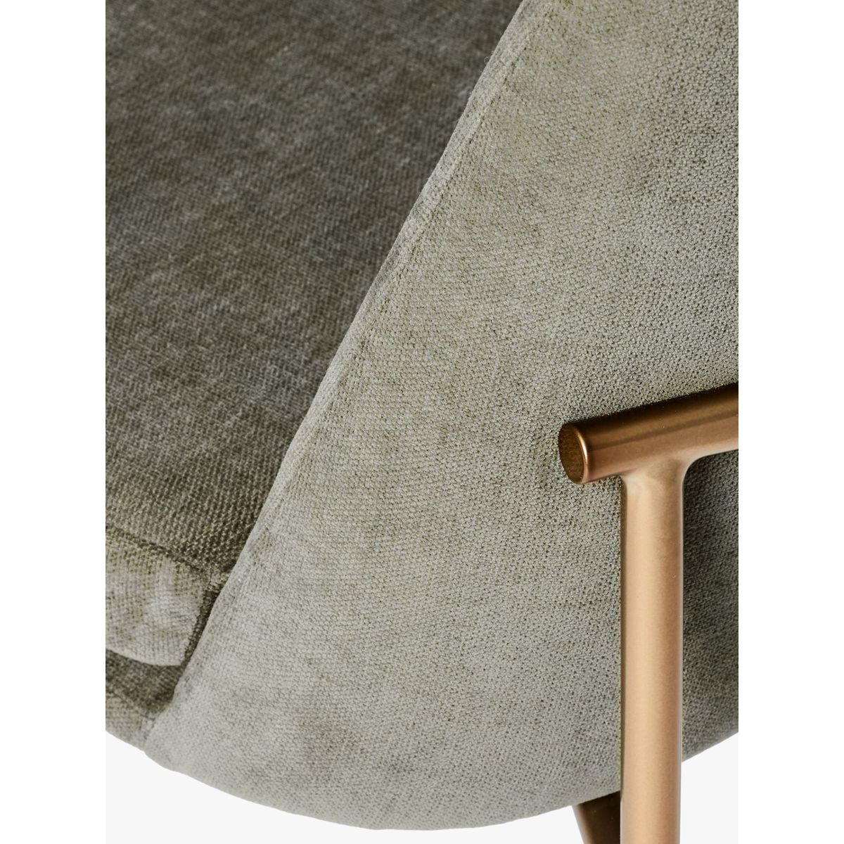 Combining comfort and style, west elm's Jack chair is designed with a deep, cushioned seat pad. Made from metal in an antique-brass finish, the exposed frame curves gently at the back to ensure a supportive sit. Upholstered in distressed velvet, this versatile chair can easily be used around your house.