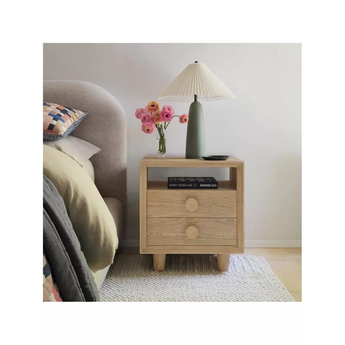 The West Elm table lamp with its pleated shade and mid green finish is a versatile piece that adds subtle colour and texture to a range of interiors. I love how its simple yet elegant silhouette can complement both modern and Scandinavian-style living rooms or bedrooms. It works particularly well layered with other soft-hued and natural materials, bringing a touch of understated sophistication. For styling, I recommend pairing it with other muted greens or tonal neutrals to create a calming ambiance. It’s also a great size for side tables or bedside setups, where its soft glow can offer ambient lighting without overpowering the space. Overall, it’s a practical, stylish addition that balances form and function seamlessly.
