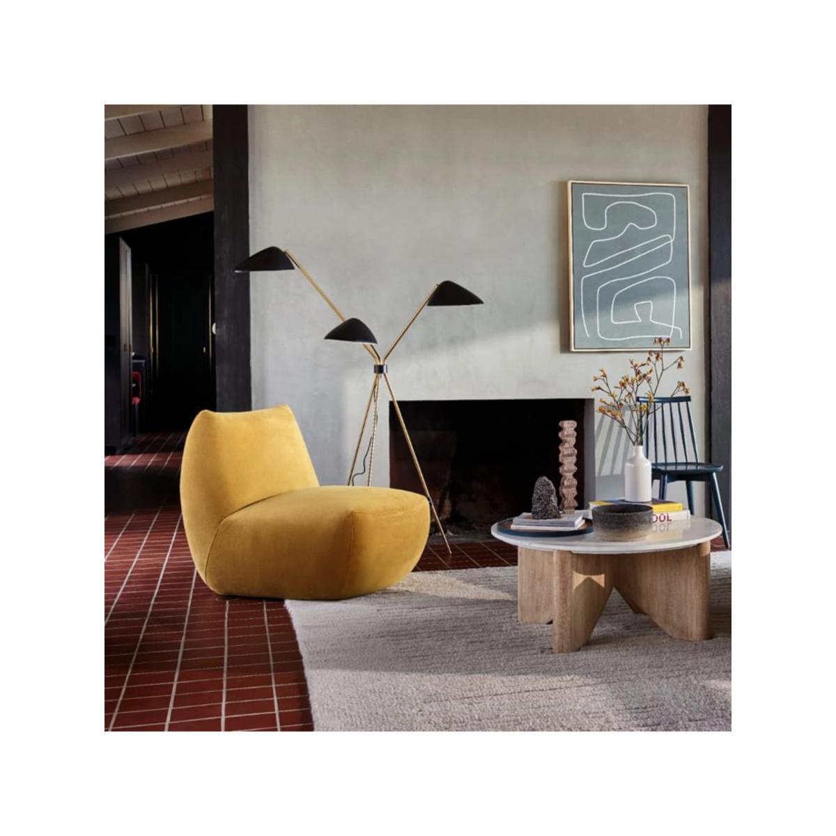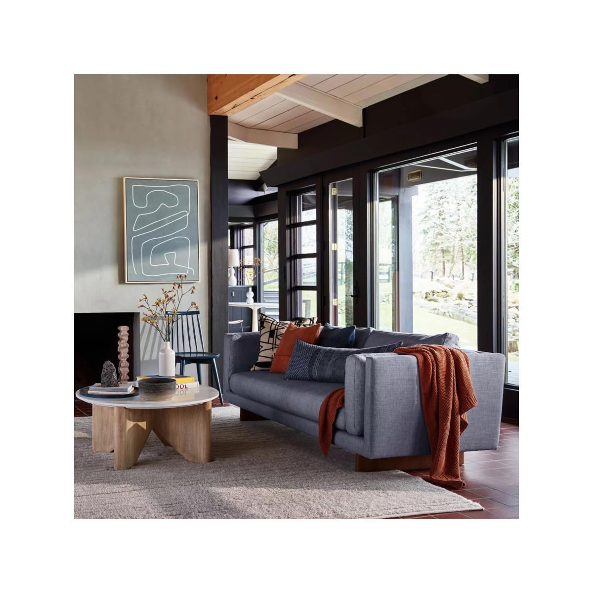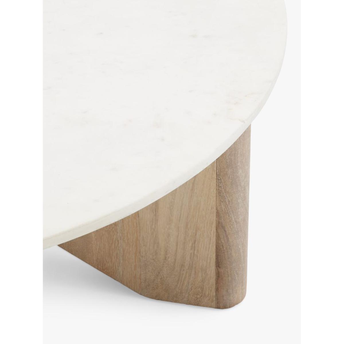 A beautiful centrepiece for your living room, this coffee table exudes laid-back sophistication. The chunky base is made from responsibly-sourced mango wood, sourced from trees that no longer produce fruit, and its light finish keeps the table looking natural and rustic. The light and luxurious round marble top offers the perfect complement. For a table that will help your space feel calm, refined and cosy, this table is contract-grade: manufactured to meet the demands of both commercial and residential use. The base features adjustable levels to adapt to varying floor levels. Want to see it first? You may want to see and get a feel for the furniture in one of our shops before ordering. We'll be able to tell you where the range you'd like to view is on display.