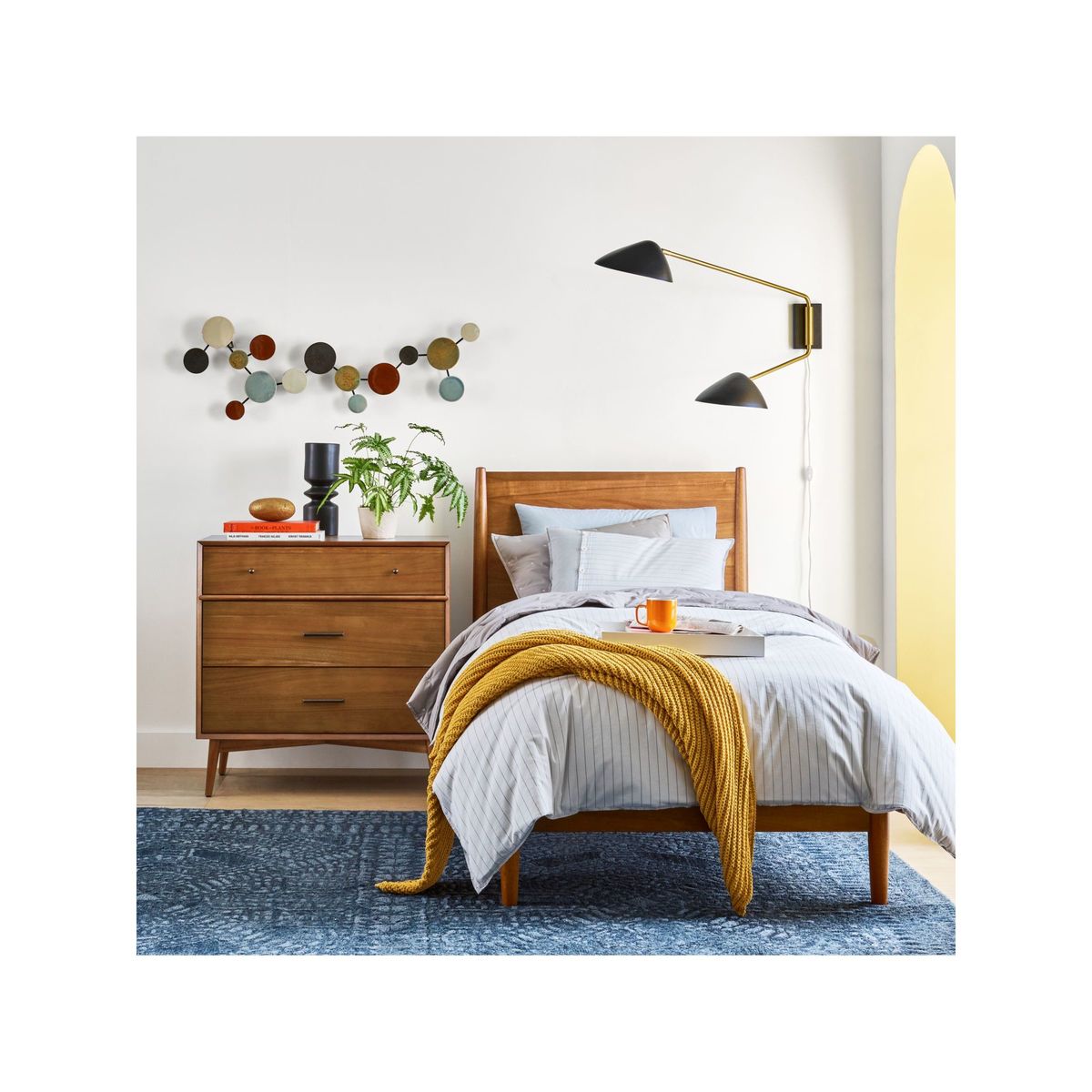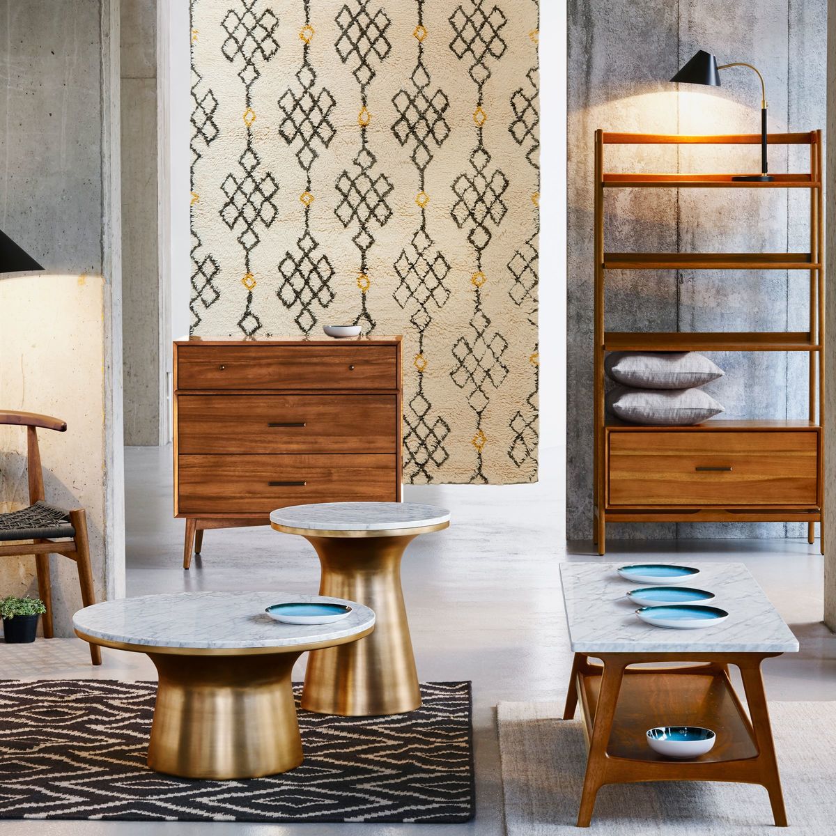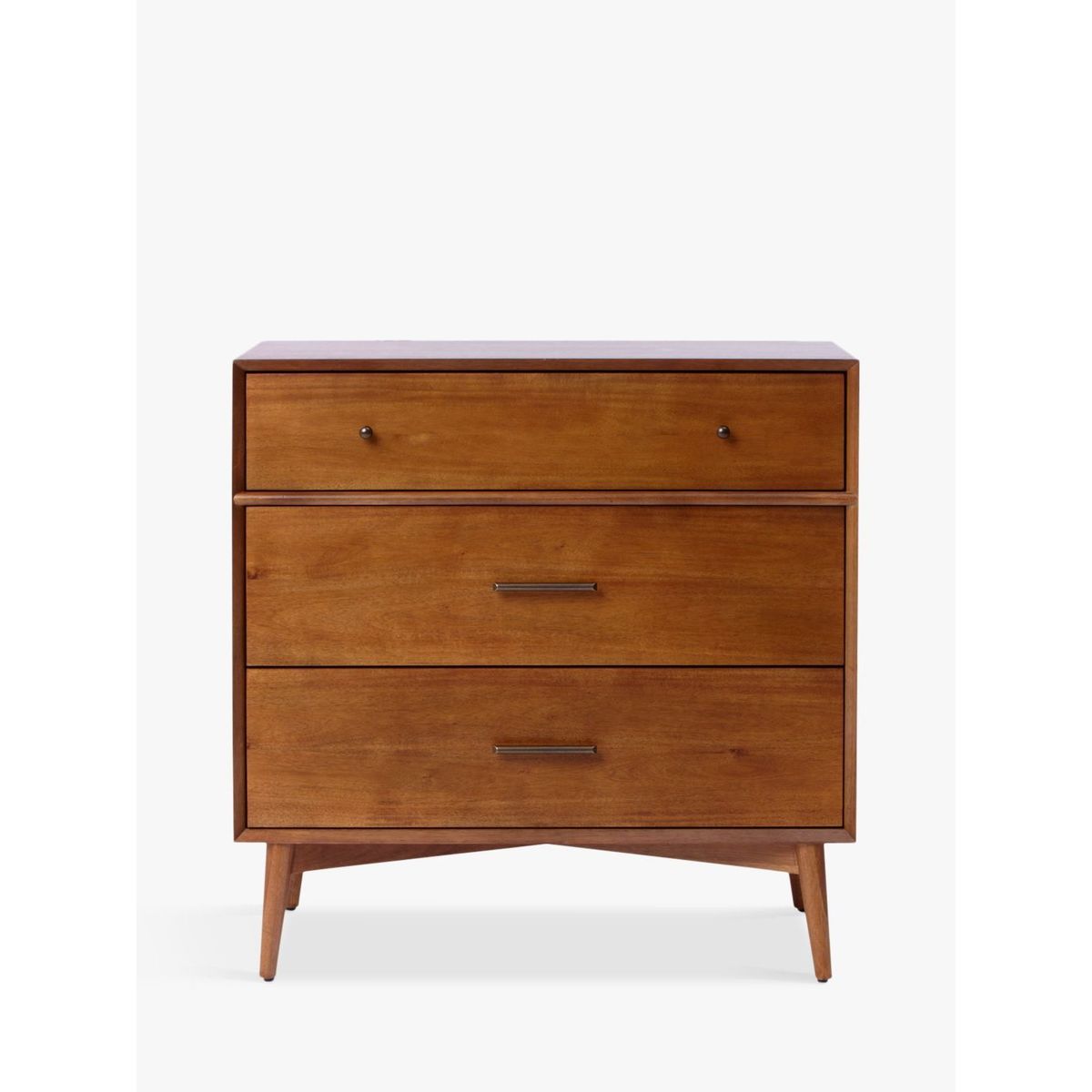 The Mid-Century chest of drawers from west elm offers generous storage space in a design that references a retro American influence. Designed with 3 drawers in total, it's made from FSC-Certified materials, with a kiln-dried solid wood and ash wood veneer frame in the Pebble style and Acacia and eucalyptus wood in the Acorn style. Finished with antique-style hardware and bevelled front edges, this is a versatile piece for almost any interior style. Want to see it first? You may want to see and get a feel for the furniture in one of our shops before ordering. We'll be able to tell you where the range you'd like to view is on display.