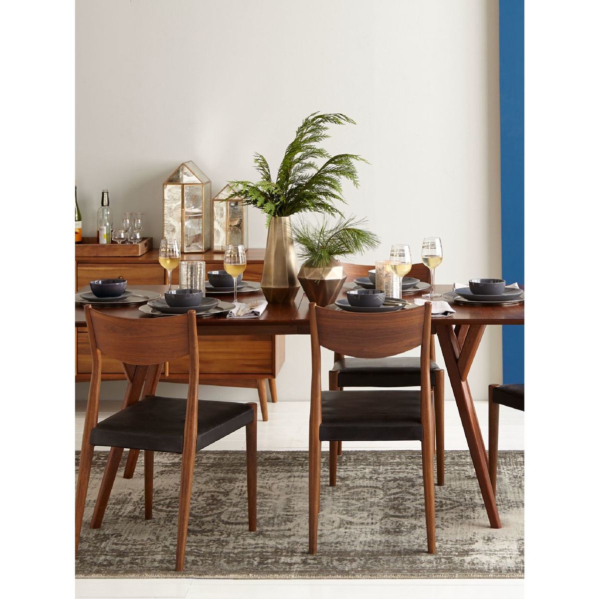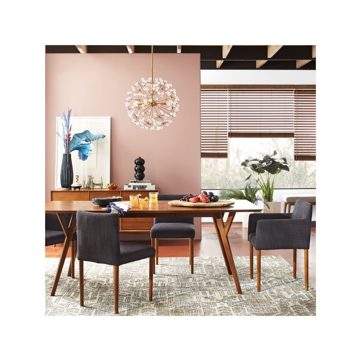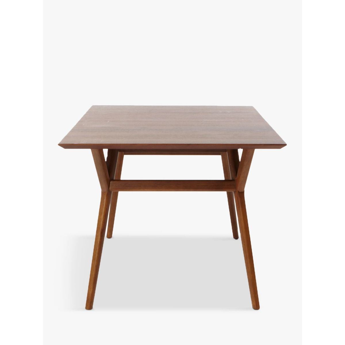 With its pared back design and clean lines, the Mid-Century dining table will take you back to a bygone era with its bevelled edges and warm walnut veneer surface. Expanding to fit up to eight diners, it is made from a durable and hardy solid eucalyptus wood, and features an extension leaf which can be stored away when not in use. Please note: not all our ranges are on display in our shops. For more information, please speak to a furniture Partner in store, or call 03452 661805 and we can tell you where the range you'd like to view is on display.