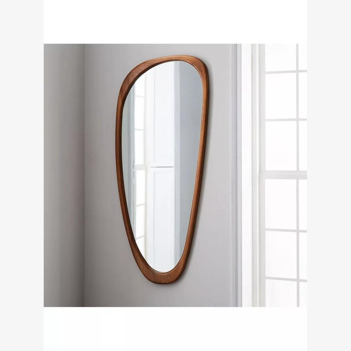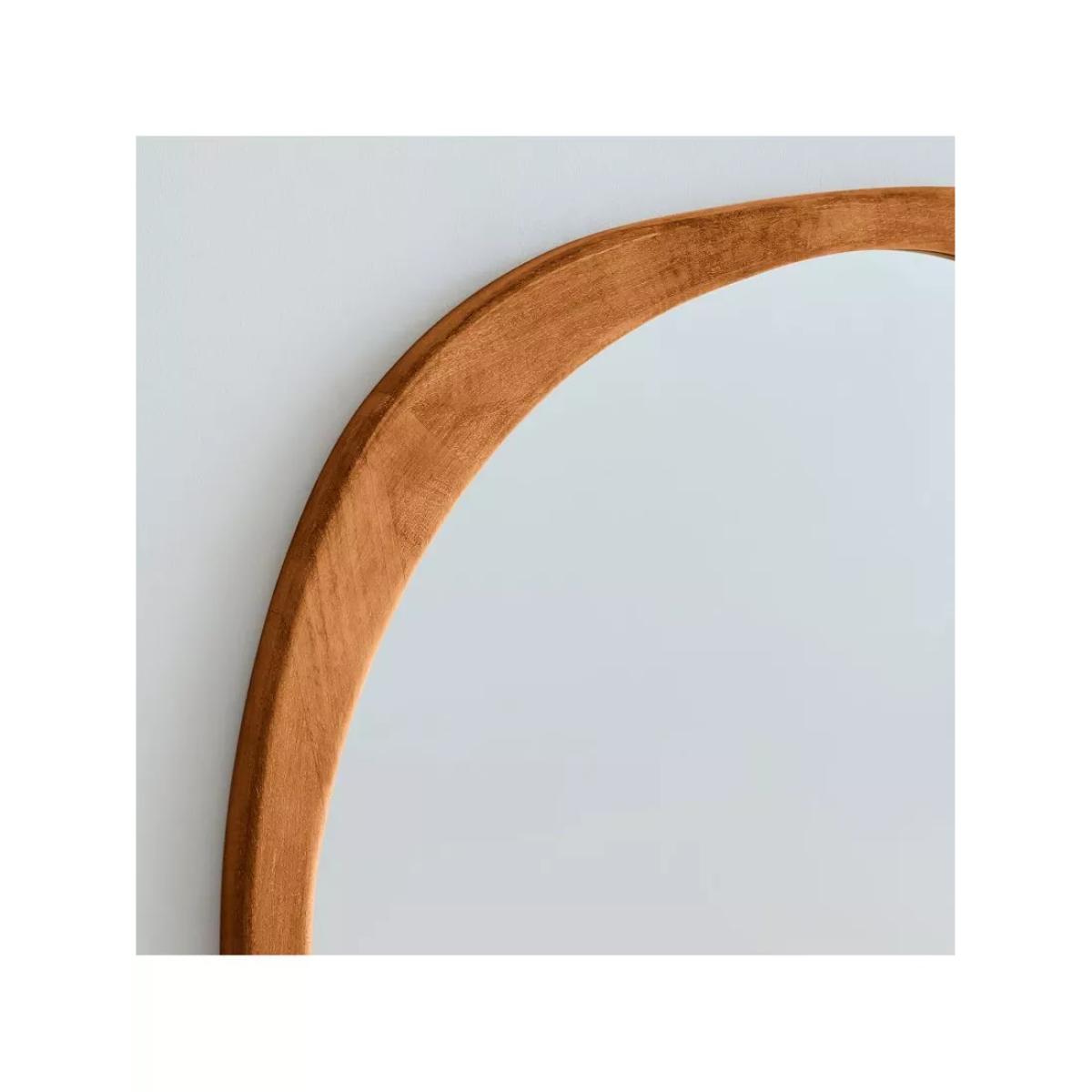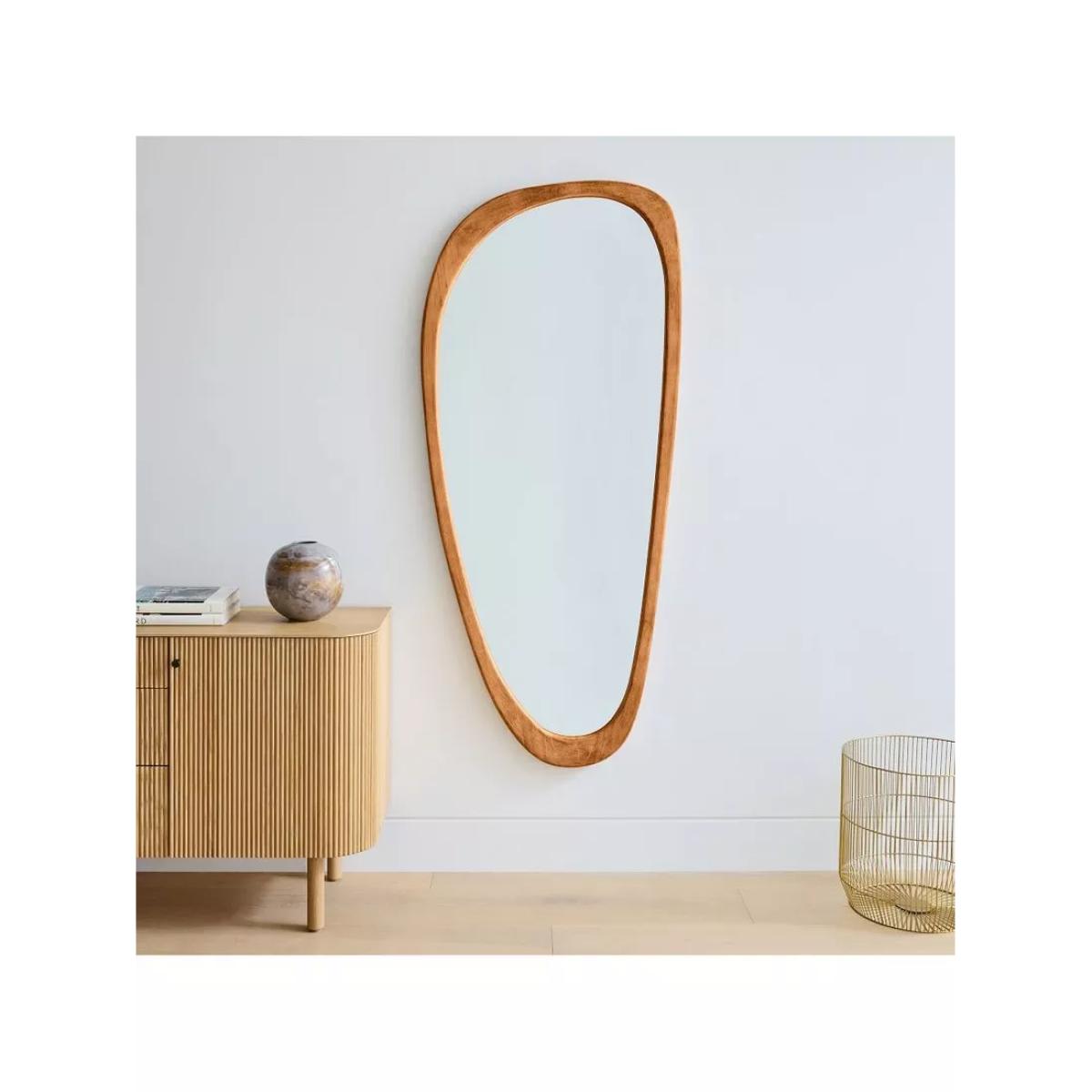 Inspired by Italian mid-century design, this wall mirror has an organic shape made of kiln-dried solid eucalyptus wood and covered in a water-based Acorn finish. Great for bedrooms or entryways. Can be hanged or leaned against a wall. Tip kit included. GREENGUARD Gold Certified. This low-emitting product has been screened for over 10,000 chemicals and VOCs. By choosing this product you are supporting responsible management of the world's forests. The Forest Stewardship Council® (FSC®) is a global, not-for-profit organisation that helps take care of forests and the people and wildlife that call them home. To learn more, visit www.fsc.org.