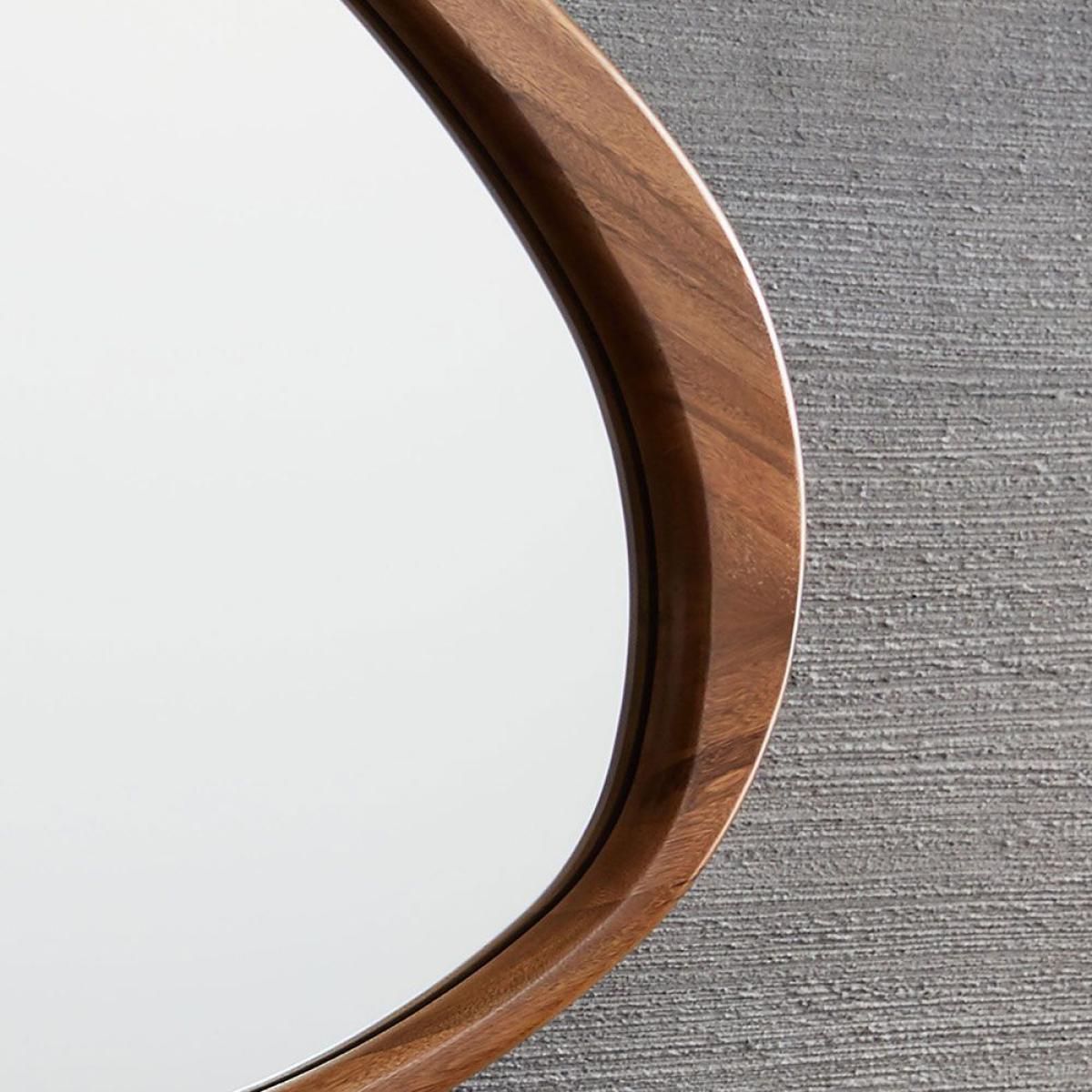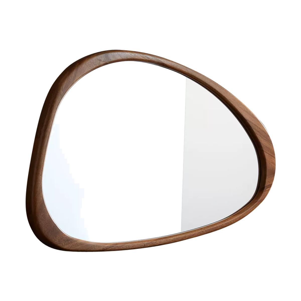 This abstract mirror from west elm boasts sleek curves and a weighty wooden frame to bring a modern feel to your interior styling. Crafted from solid acacia wood in an acorn finish, it can be wall mounted vertically or horizontally. Mounting hardware is included.