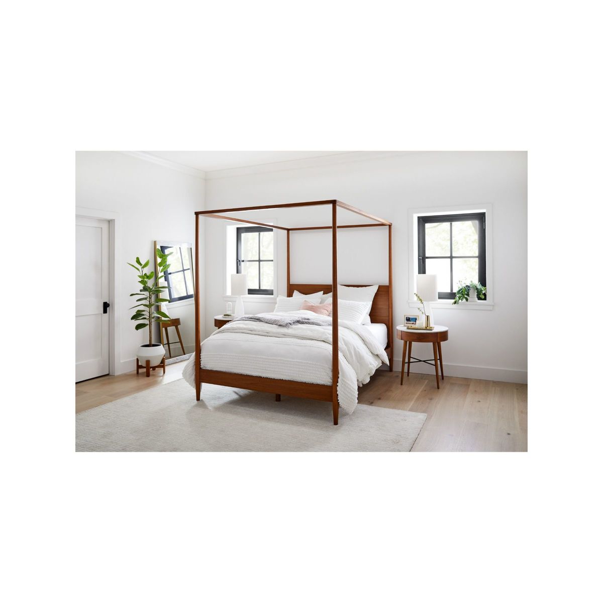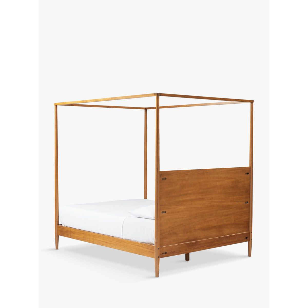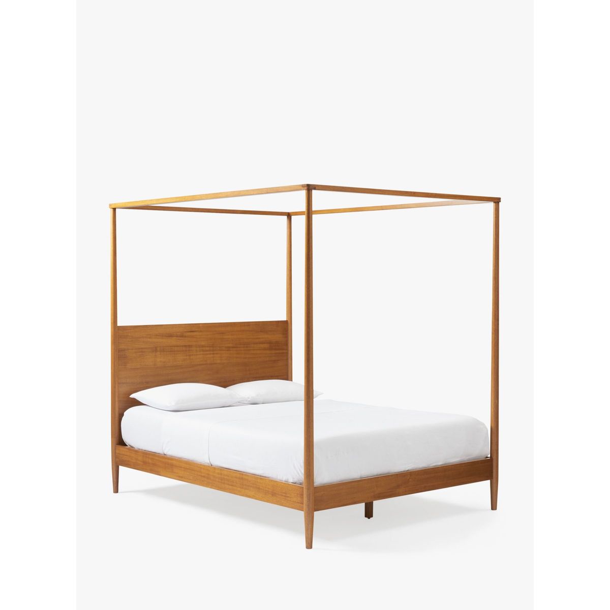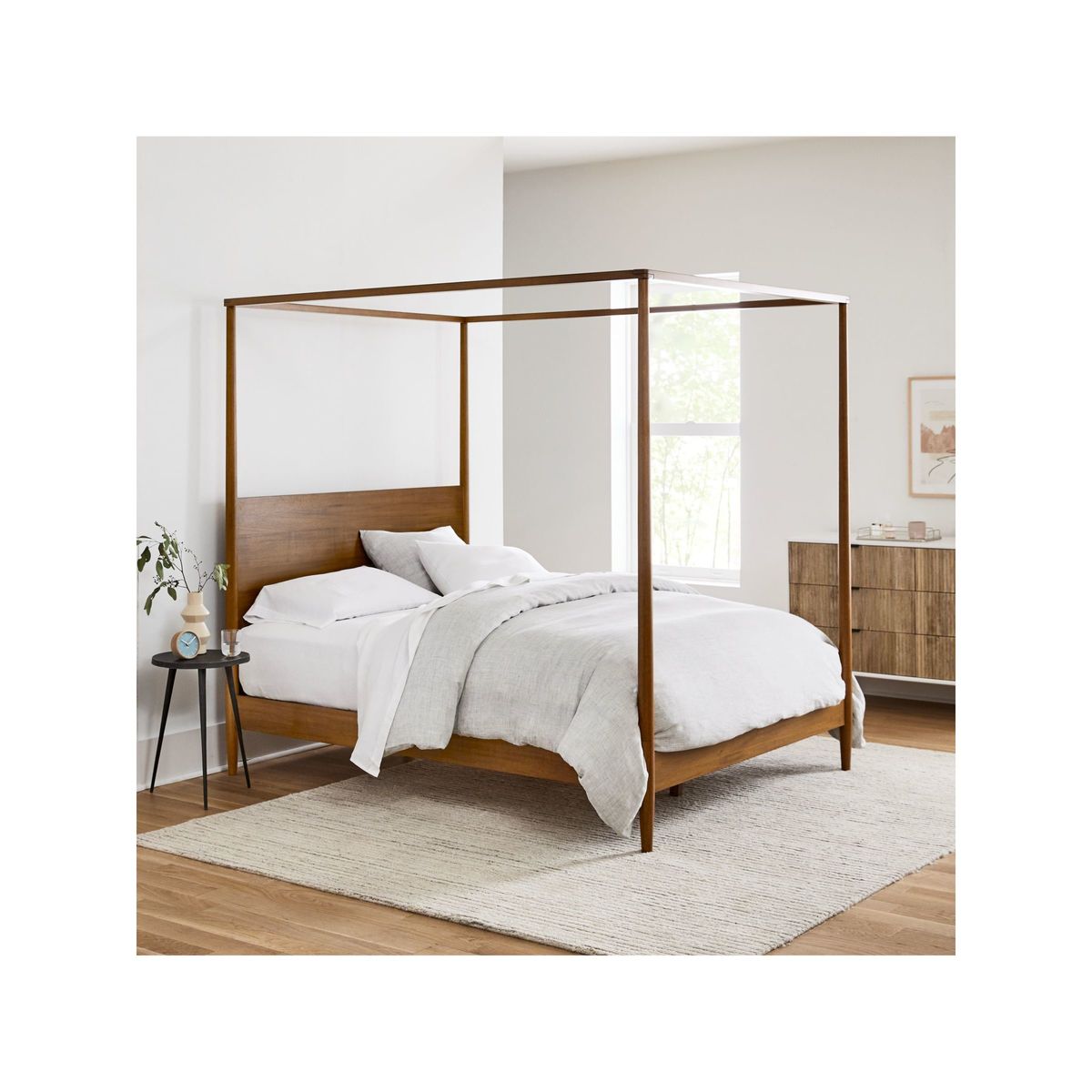 West elm's Canopy bed frame is a statement choice for your bedroom, with a design that showcases a more refined approach to Mid-Century inspired furniture. Made from FSC-Certified solid eucalyptus wood and acacia veneer, the acorn finish brings out the rich tone of the wood grain. It features a streamlined headboard, smooth tapered legs and its four-poster style makes it a perfect option for transforming your bedroom into an inviting sleep sanctuary. FSC-Certified The wood used in this bed frame is certified to Forest Stewardship Council® (FSC) standards. The production process is monitored and all materials used can be traced to ensure responsible manufacturing. Want to see it first? You may want to see and get a feel for the furniture in one of our shops before ordering. We'll be able to tell you where the range you'd like to view is on display.