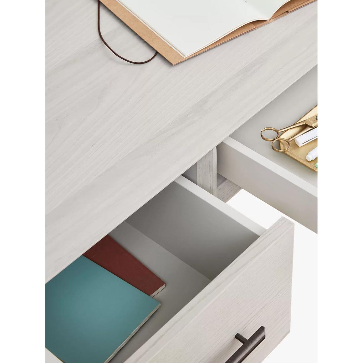 With its vintage-inspired bevelled frame and clean-lined profile, this desk will bring a Mid-Century style into your home office. There are three useful drawers for storage and its made from durable ash wood in a veneered finish. Want to see it first? You may want to see and get a feel for the furniture in one of our shops before ordering. We'll be able to tell you where the range you'd like to view is on display.