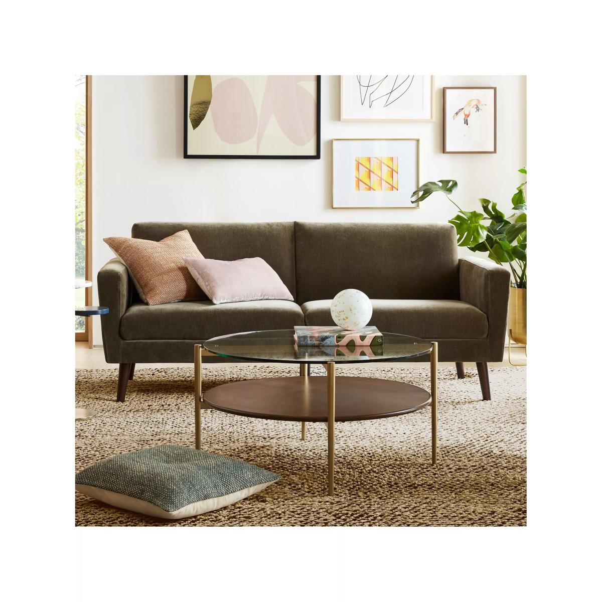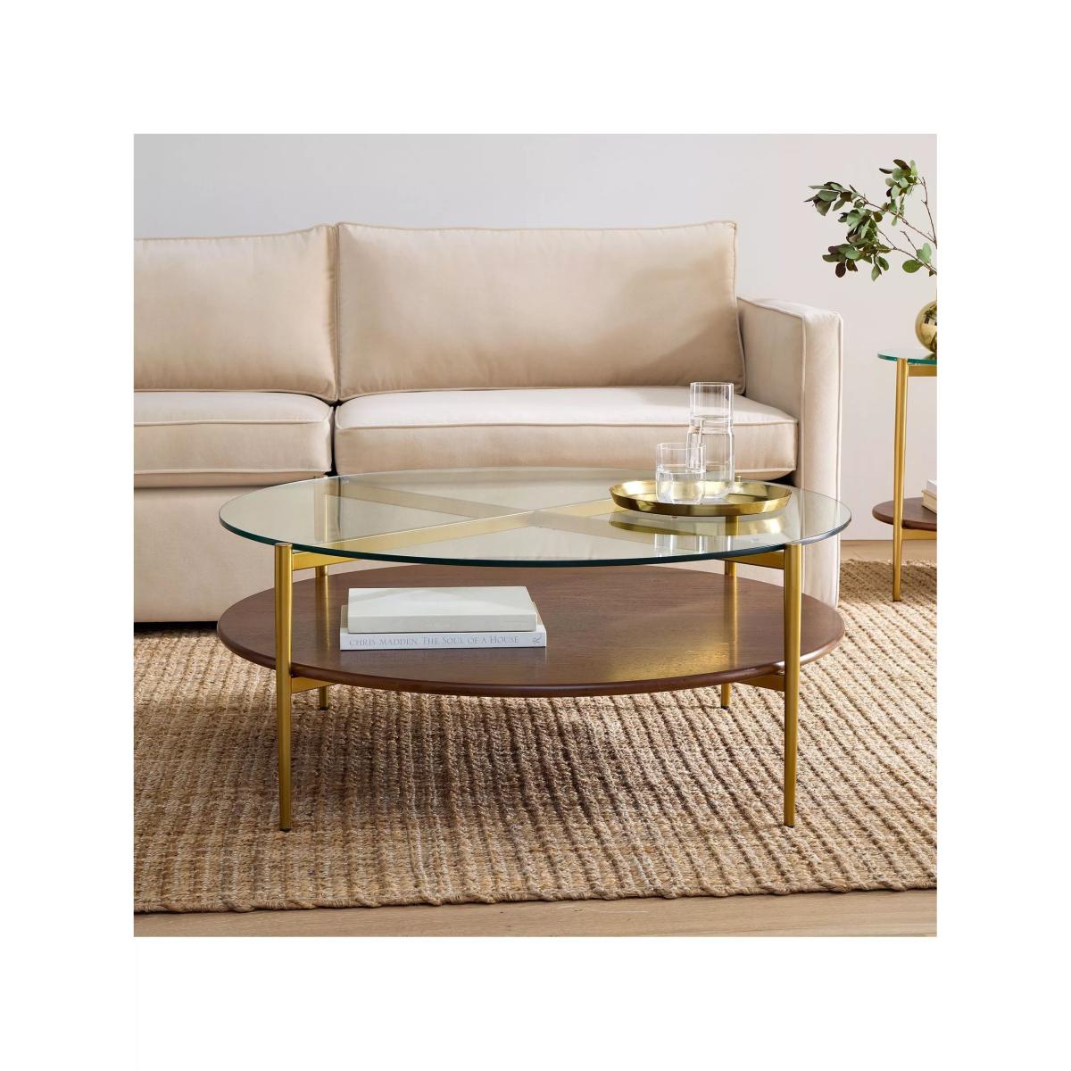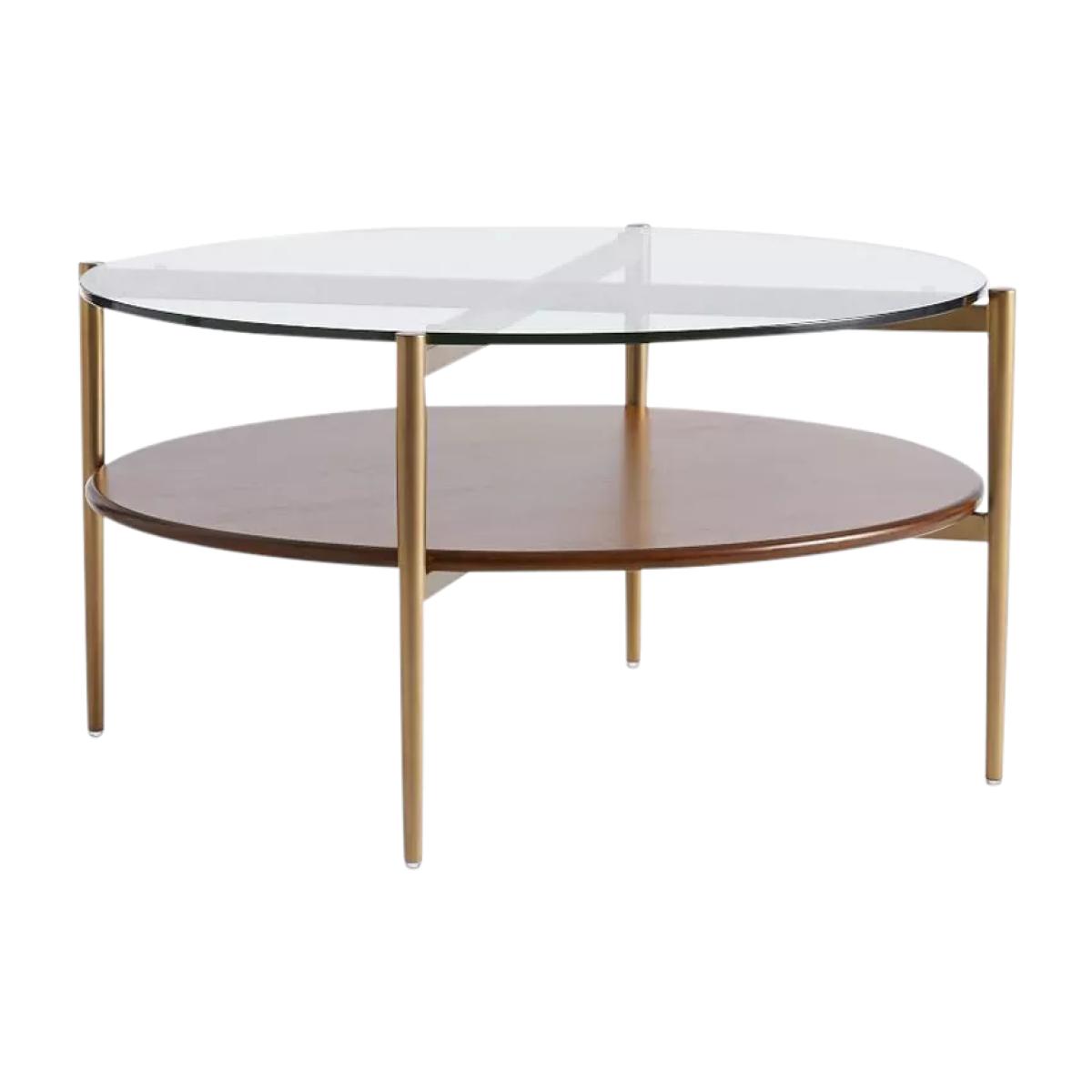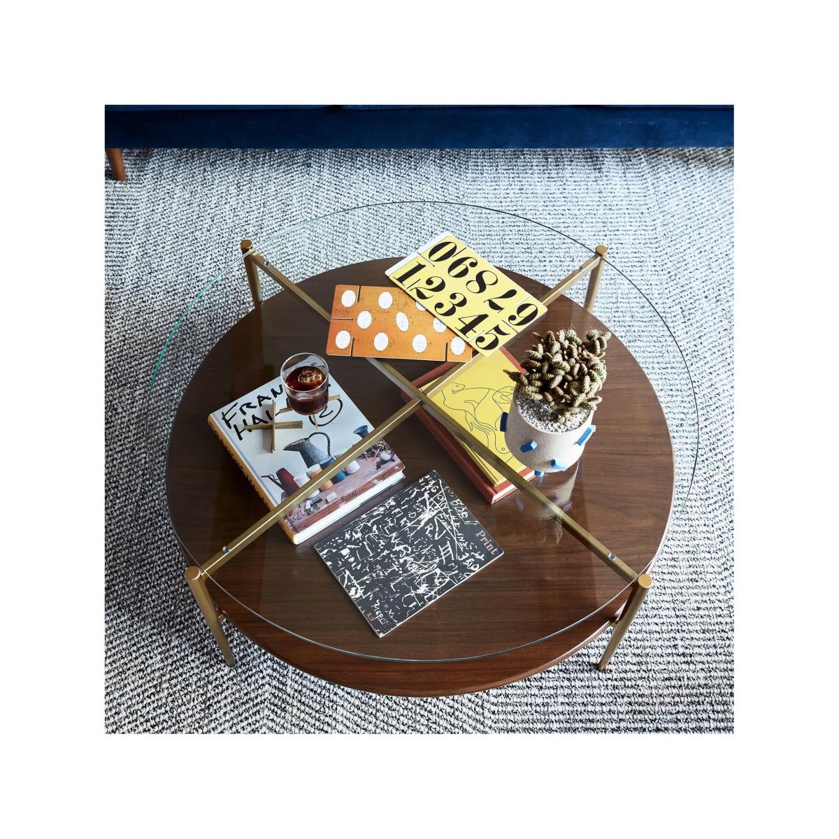 west elm Mid-Century Round Wood Art Display Coffee Table, Walnut/Antique Brass