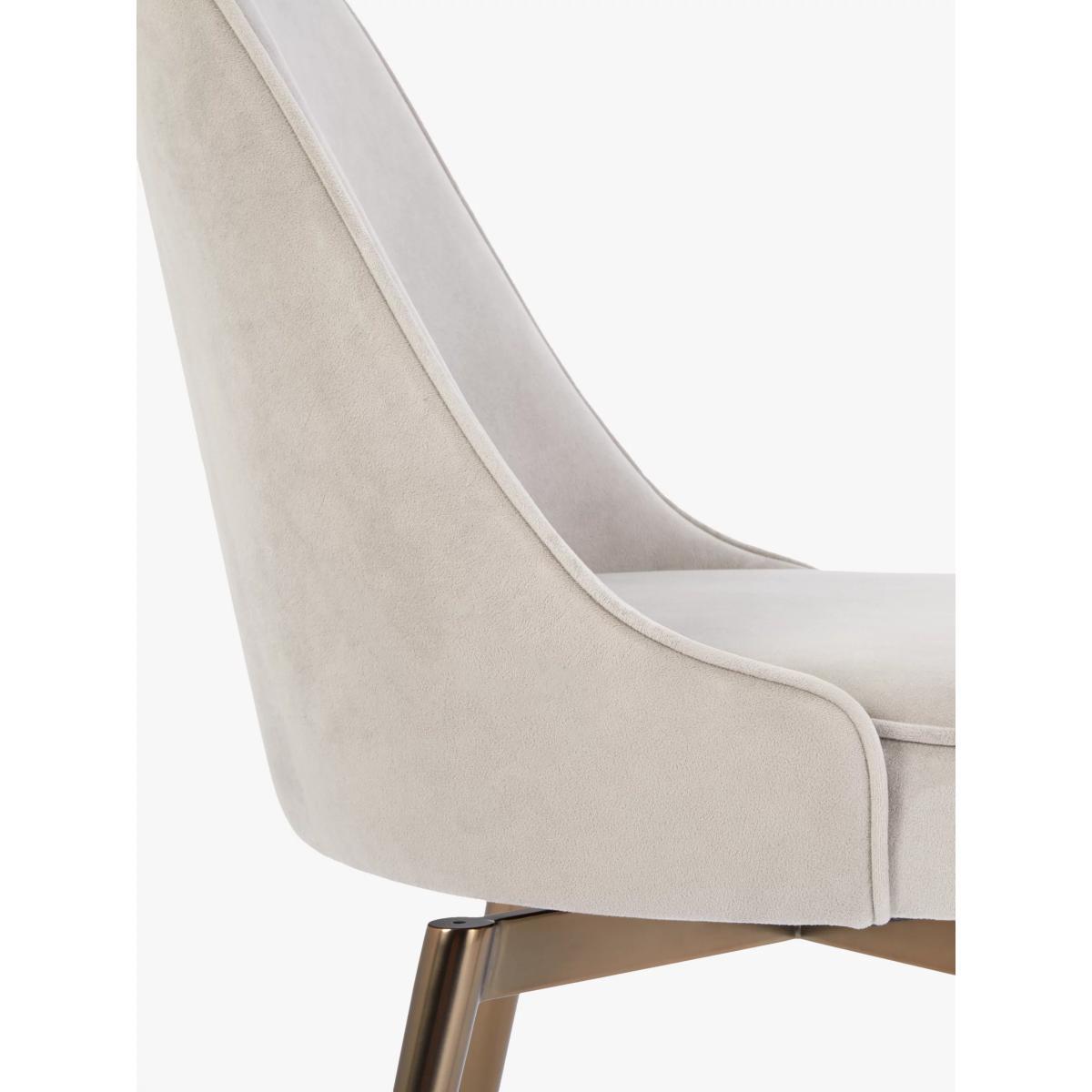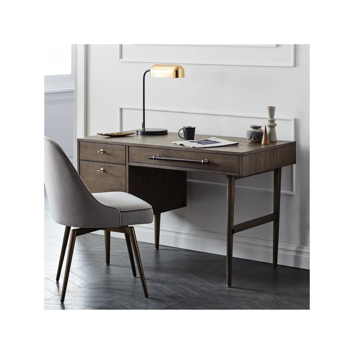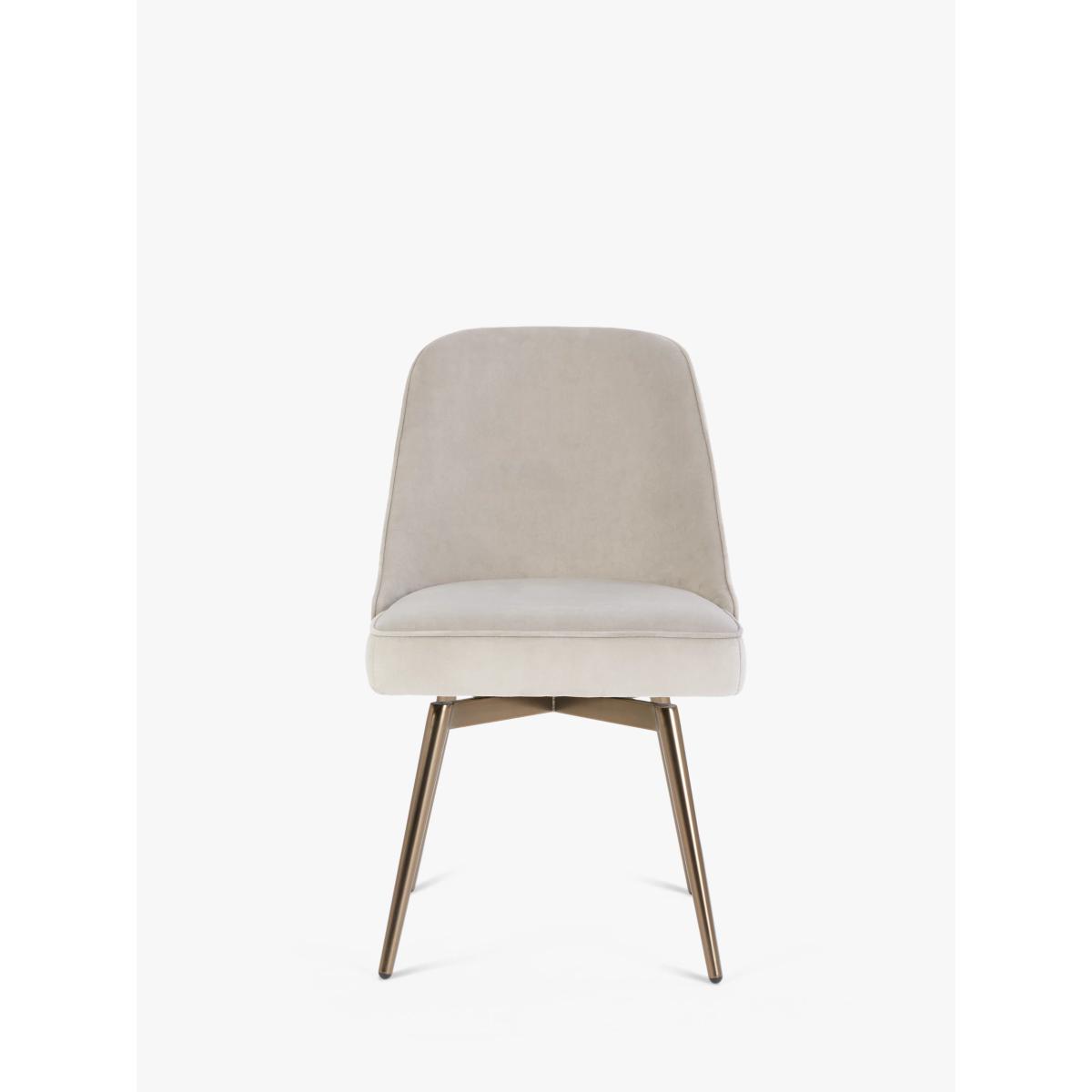 Showcasing a Mid-Century inspired design through its bronze-finished splayed metal legs and velvet upholstery, this office chair from west elm is a comfortable option for light computer use at your desk. The plump, upholstered seat has a convenient swivel function and the curved backrest ensures a comfortable sit. Protect your floor While this chair is suitable for the flooring specified, we suggest using floor pads or mats where possible, for added protection to your flooring and furniture. Want to see it first? You may want to see and get a feel for the furniture in one of our shops before ordering. We'll be able to tell you where the range you'd like to view is on display.