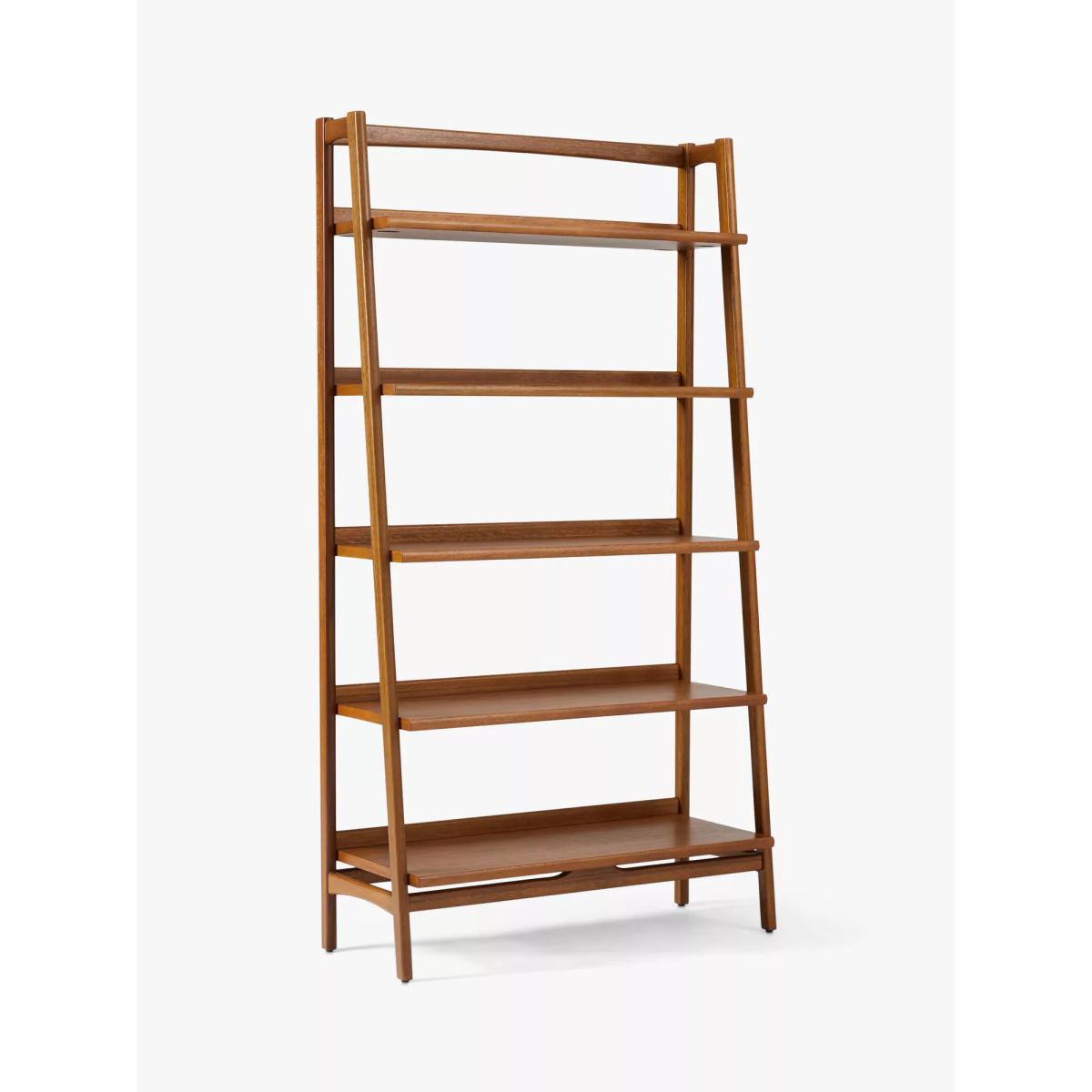 Thanks to its slim legs and bevelled edges, this wide shelving unit celebrates the retro, Mid-Century aesthetic of modern American design. It's made from responsibly-sourced timbers including eucalyptus wood and with five shelves in total, there's plenty of space for books and decorative accessories. It's wider in size, so it will draw the eye in your living space. Want to see it first? You may want to see and get a feel for the furniture in one of our shops before ordering. We'll be able to tell you where the range you'd like to view is on display.