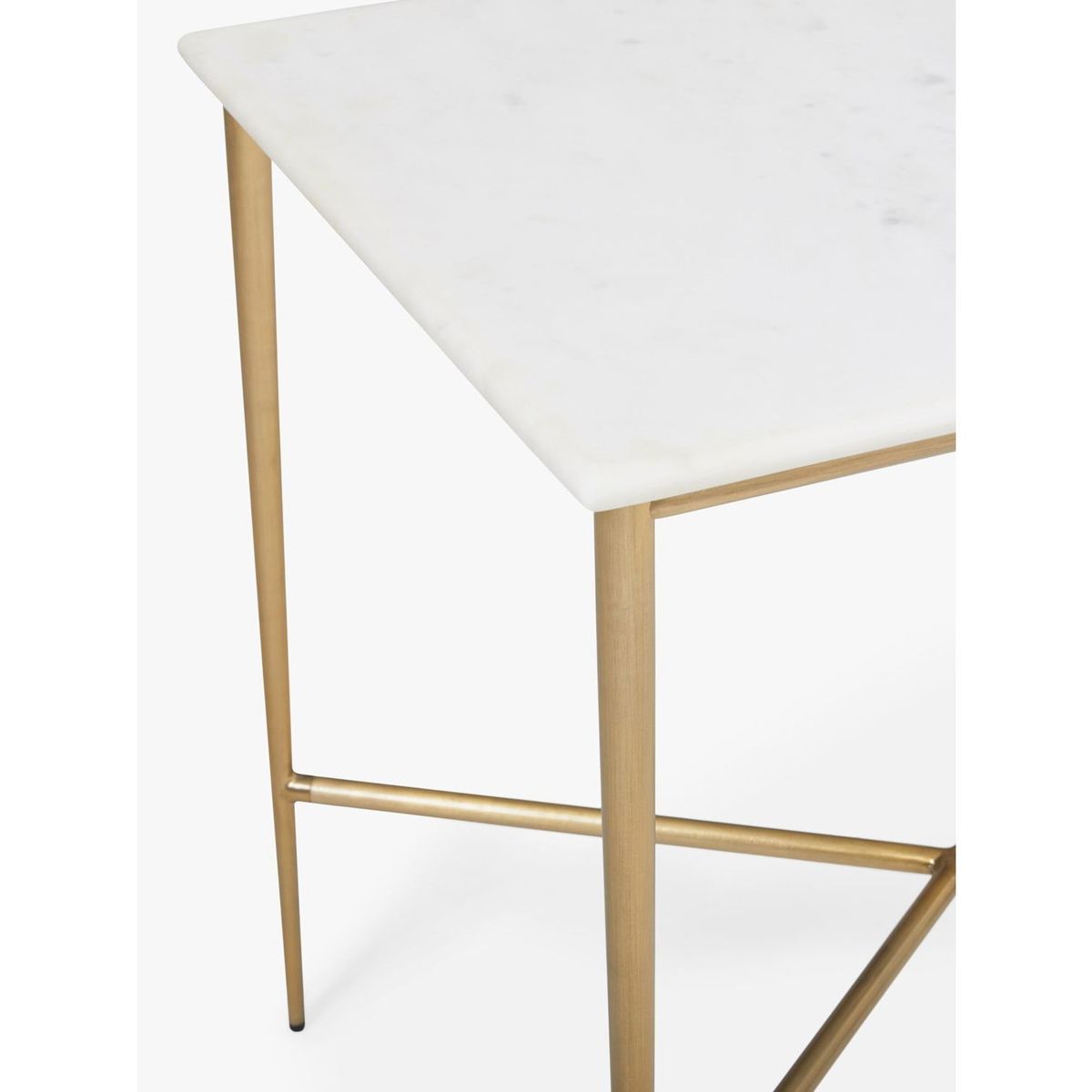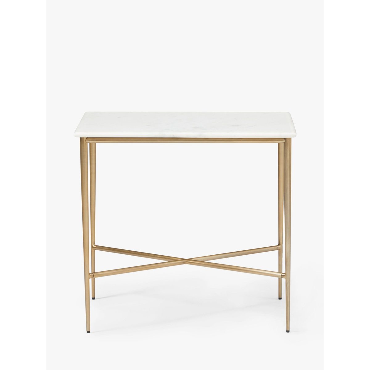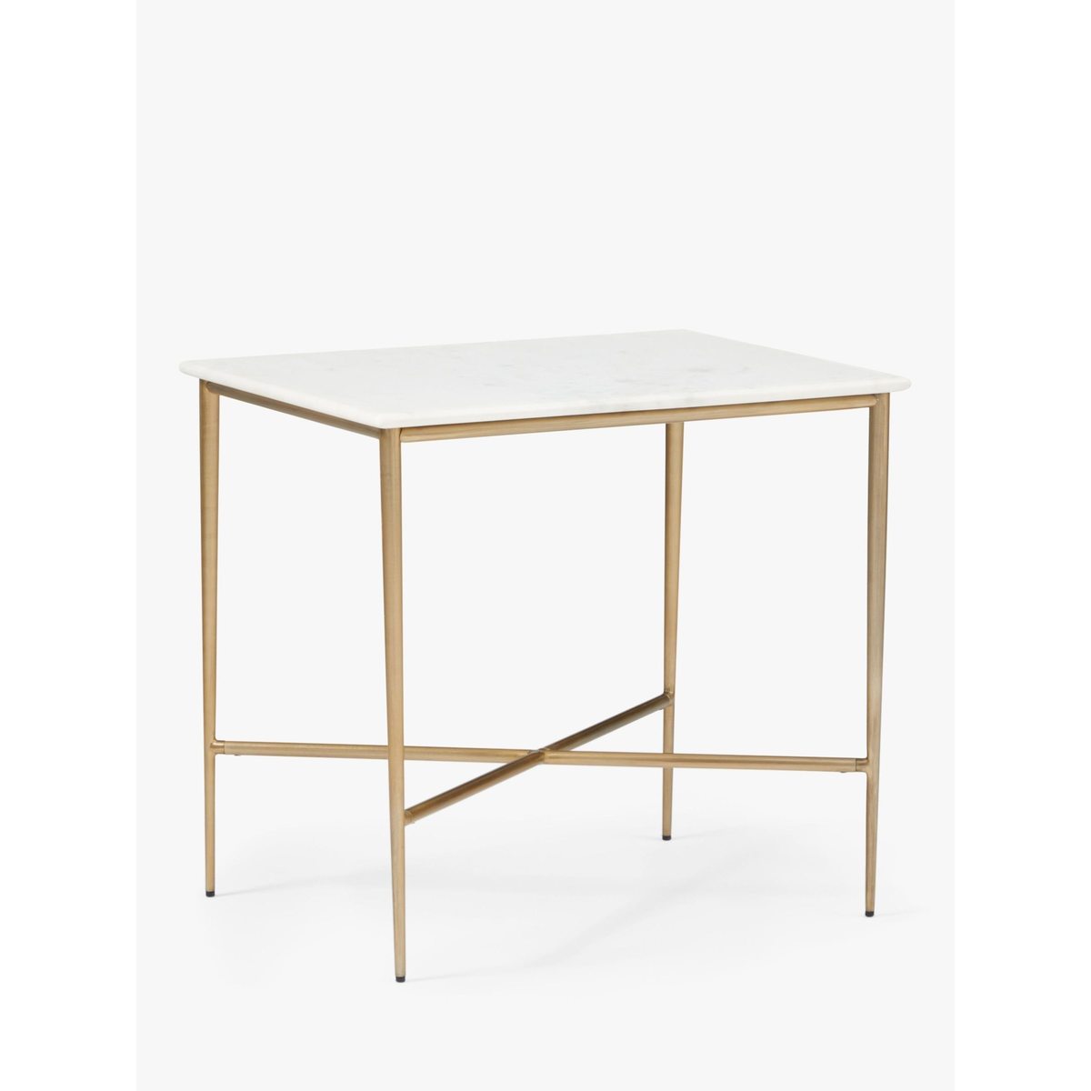west elm's Neve side table is a statement piece for your living room. It's made from solid, untreated marble which showcases the natural detail and vein of the material and gives each table a unique pattern and design. The minimalist brass-finished legs lend a retro, luxe look and ensure a stable base. Want to see it first?. You may want to see and get a feel for the furniture in one of our shops before ordering. If you do plan on doing this we recommend giving us a call on 03452 661805 as not all our ranges are on display in our shops. We'll be able to tell you where the range you'd like to view is on display.