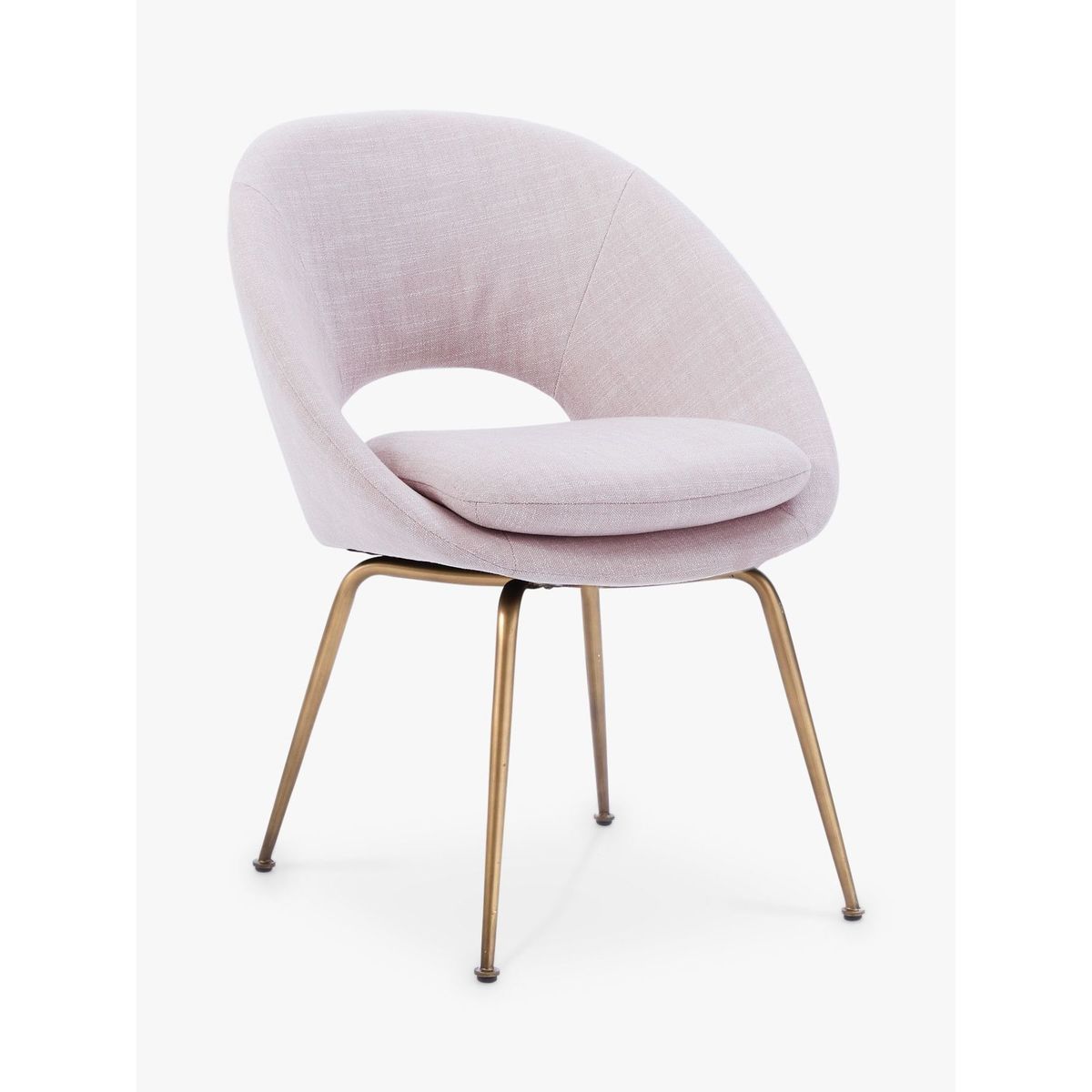 I love this chair for its modern, inviting shape and the lovely dusty blush hue, which adds a soft touch to a variety of interiors. It works particularly well in contemporary or minimalist dining rooms, bringing a gentle splash of colour without overpowering the space. Practical styling tips include pairing it with a sleek glass or wooden table to let the colour shine, and balancing it with metallic or neutral accessories. Its curved silhouette and comfortable cushioning also make it a great choice for reading nooks or extra seating in living areas. Overall, a versatile piece that combines style with comfort.