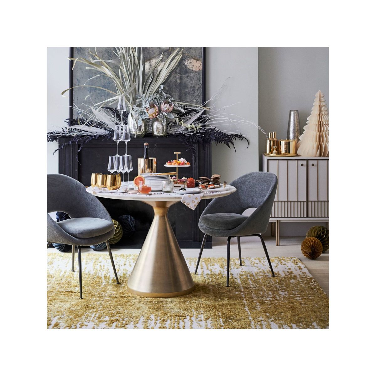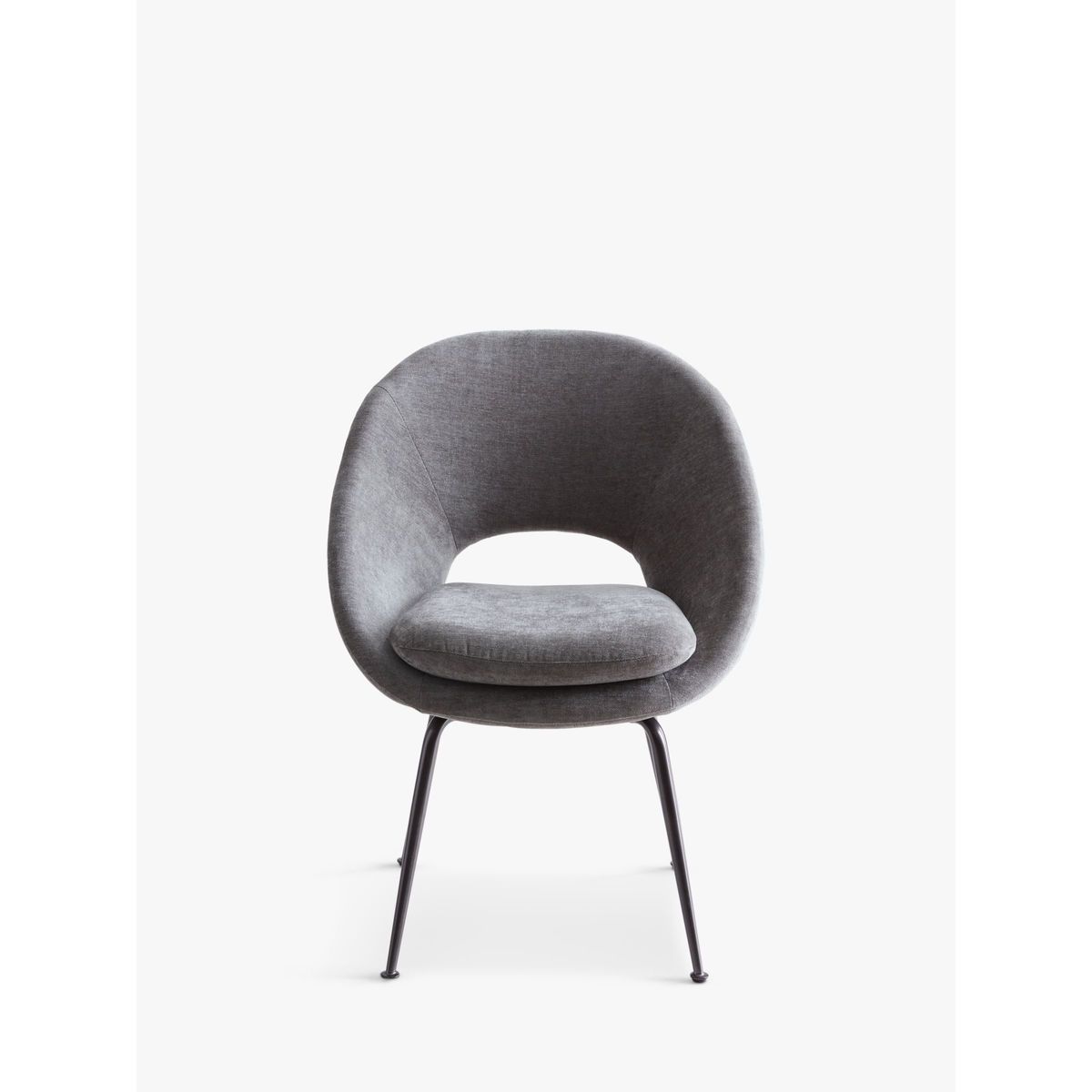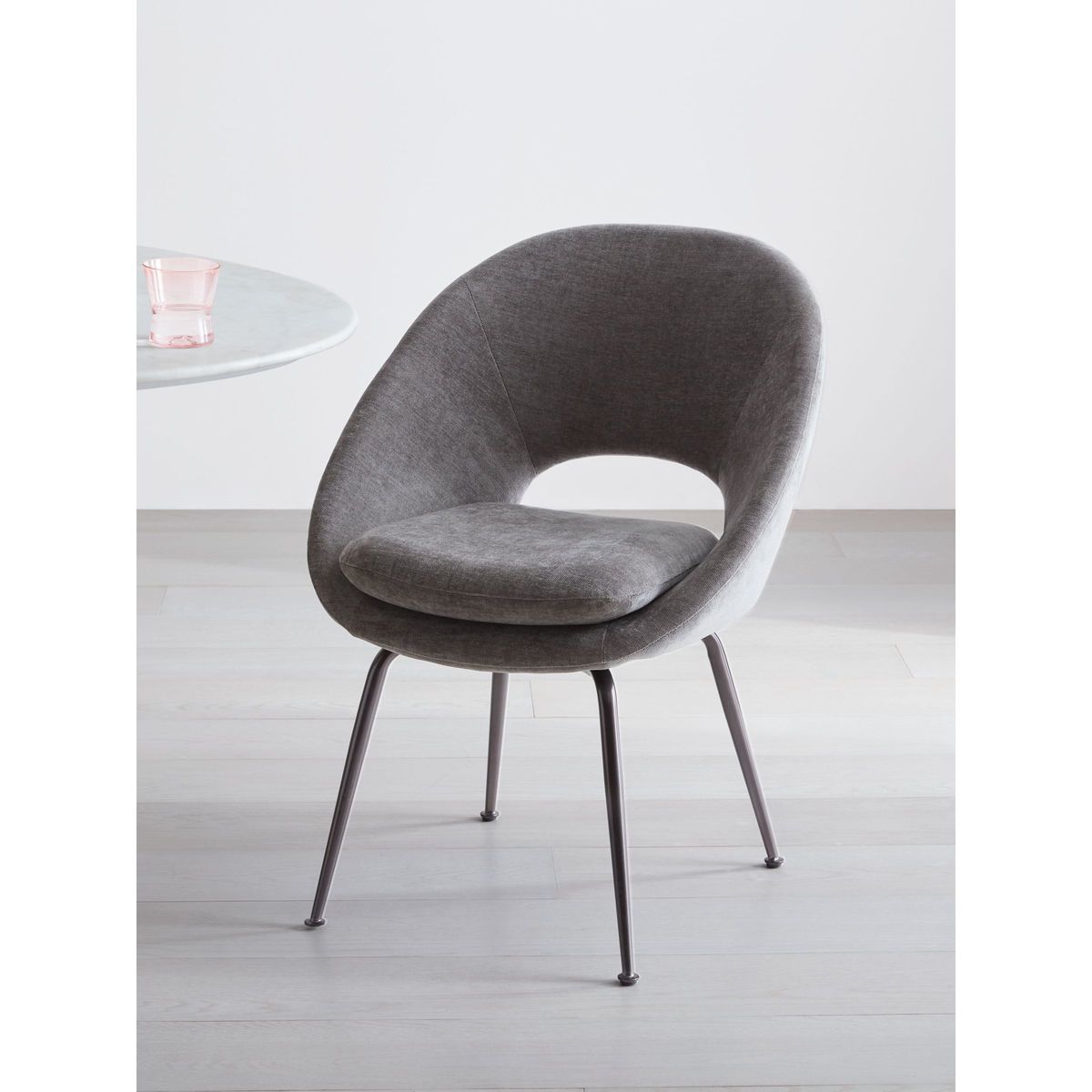 Enhance your dining room with the Orb chair from west elm. This stylish, trend-led piece boasts a curved profile with a scooped-back frame and a cut-out back. Upholstered in a soft fabric, it rests on a sturdy metal frame in a powder-coated finish.