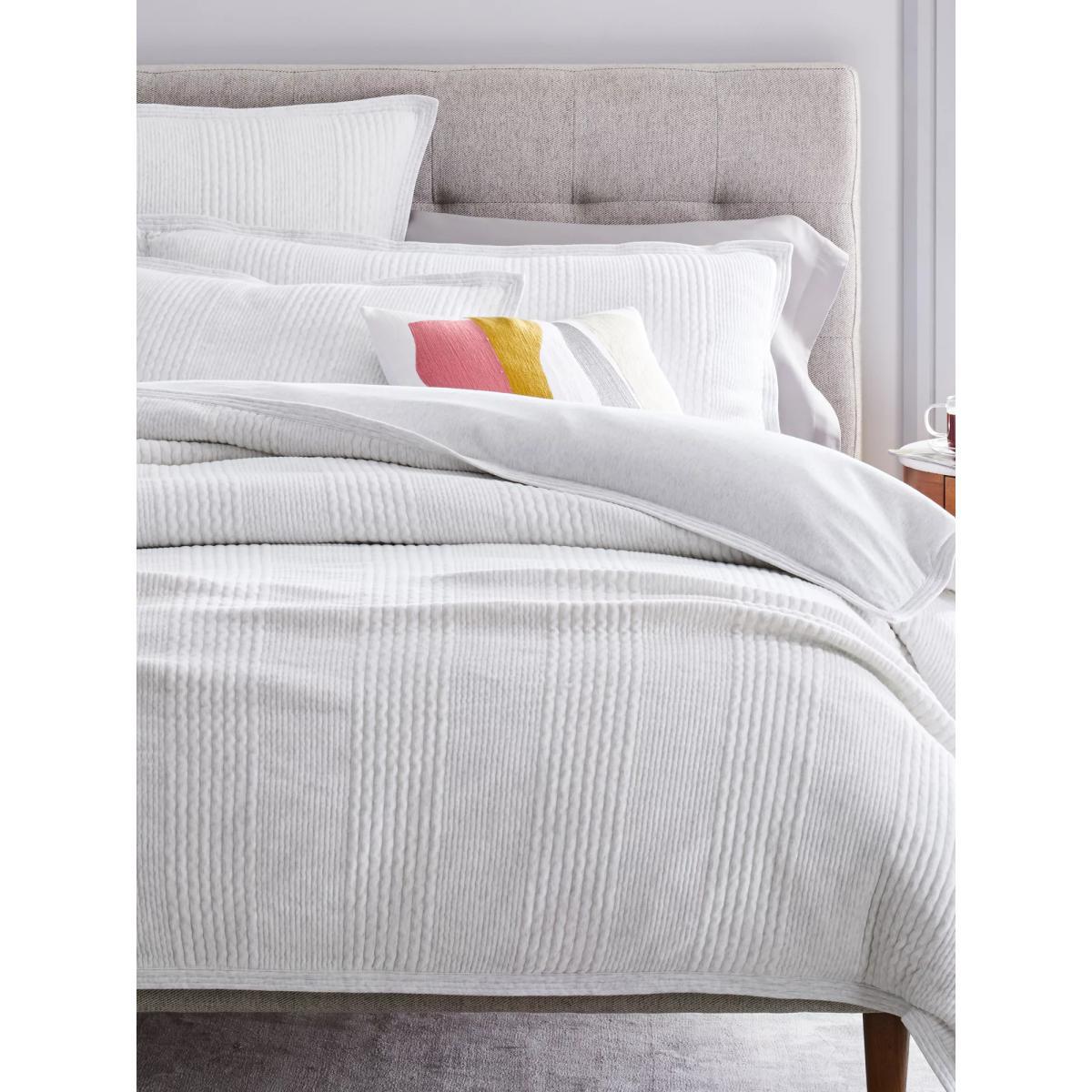 Made from organic cotton that's ring-spun, combed and yarn-dyed to offer sumptuous softness and durability, this bedding set from west elm will complete your sleep sanctuary. Making it even plusher, its knitted design incorporates a recycled polyester filling while creating a tactile linear pattern. A button closure ensures your duvet will fit securely. Bedding sizes To fit duvet/pillow size (cm) Standard pillowcase, L75 x W50cm Double duvet cover, L200 x W200cm King duvet cover, L220 x W225cm Super king duvet cover, L220 x W260cm