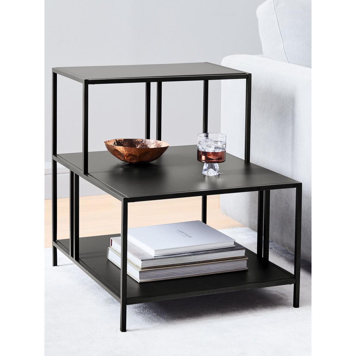A streamlined design with three staggered shelf sections, west elm's Profile side table is a practical and artful display. It's made from powder-coated iron in an antique finish that gives it an industrial look. The legs feature adjustable levellers to adapt to varying floor levels and give you a sturdy piece for the living room. Want to see it first? You may want to see and get a feel for the furniture in one of our shops before ordering. We'll be able to tell you where the range you'd like to view is on display.