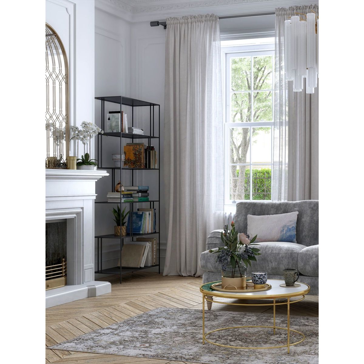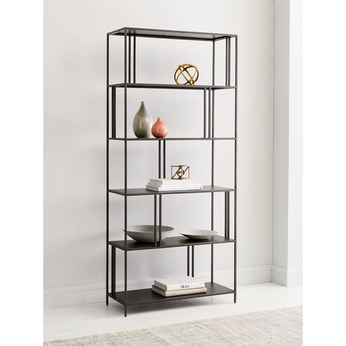 Made from sturdy iron in an antique brass finish, the Profile bookcase from west elm has five spacious shelves. Its wide, minimalist profile is designed with staggered, vertical metal rods that compartmentalise each shelf for a more contemporary feel. Want to see it first? You may want to see and get a feel for the furniture in one of our shops before ordering. We'll be able to tell you where the range you'd like to view is on display.