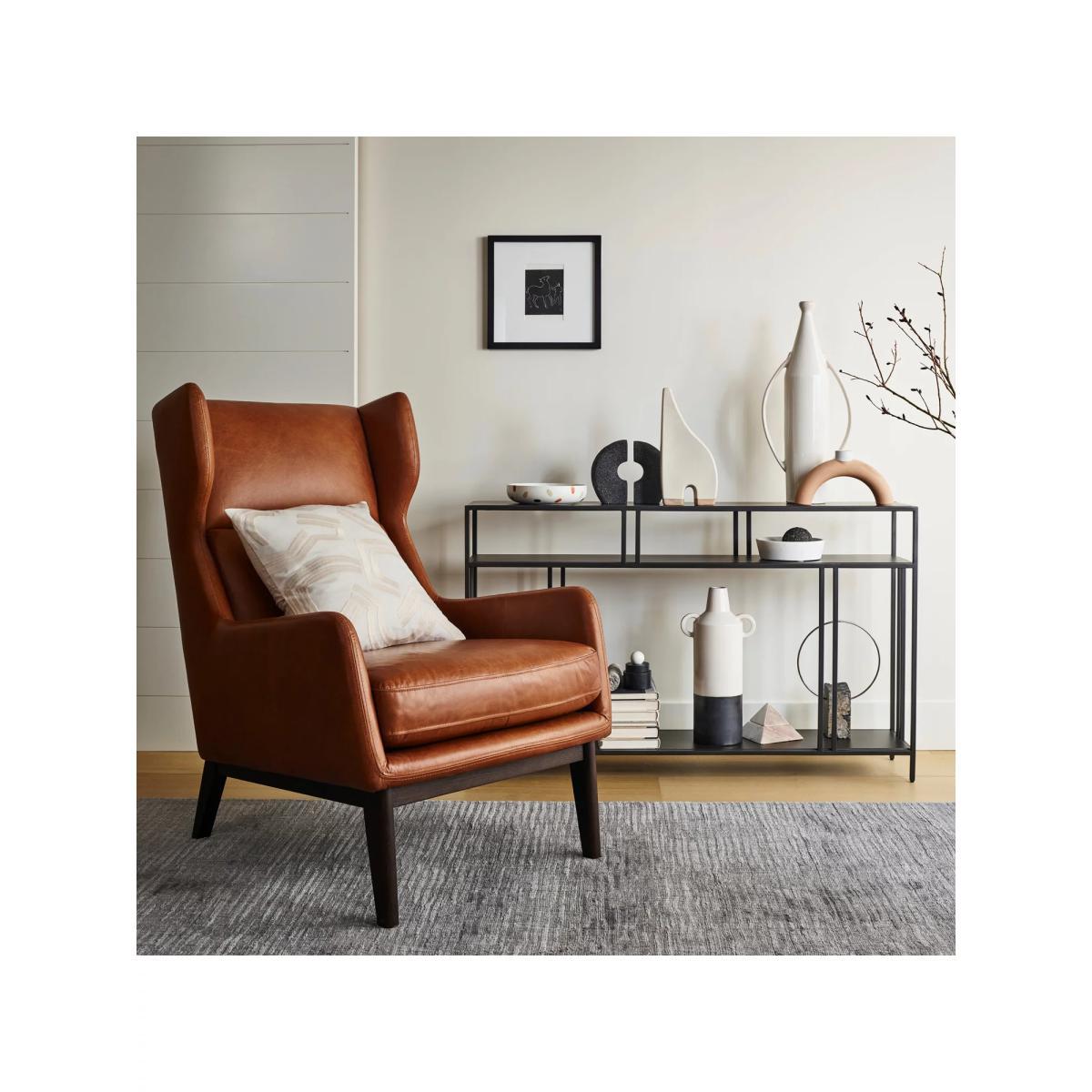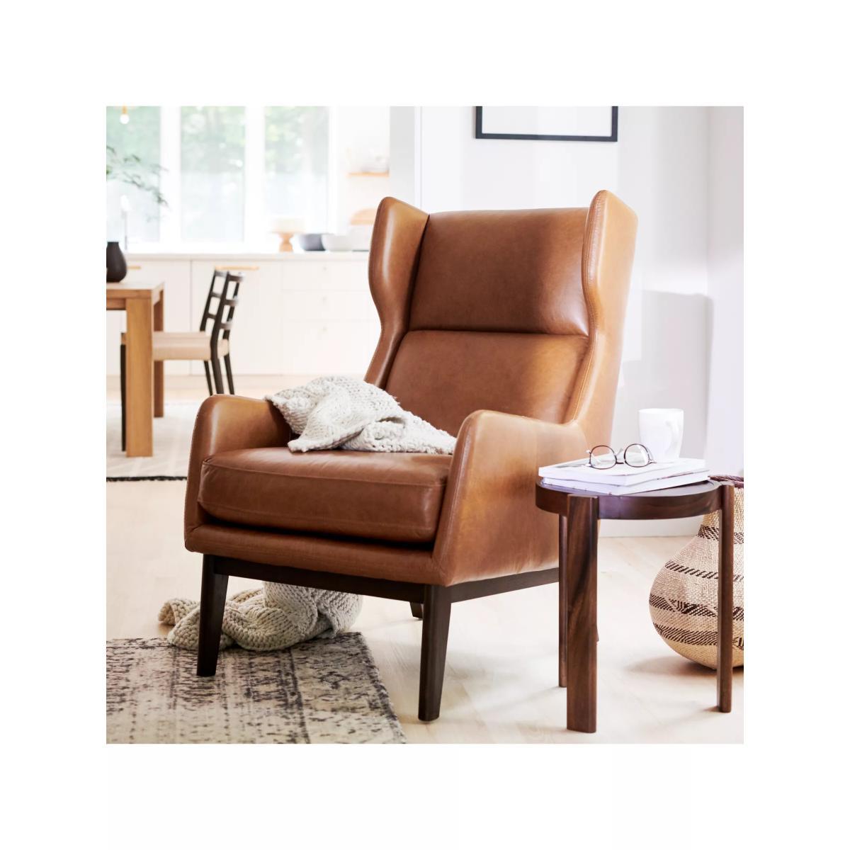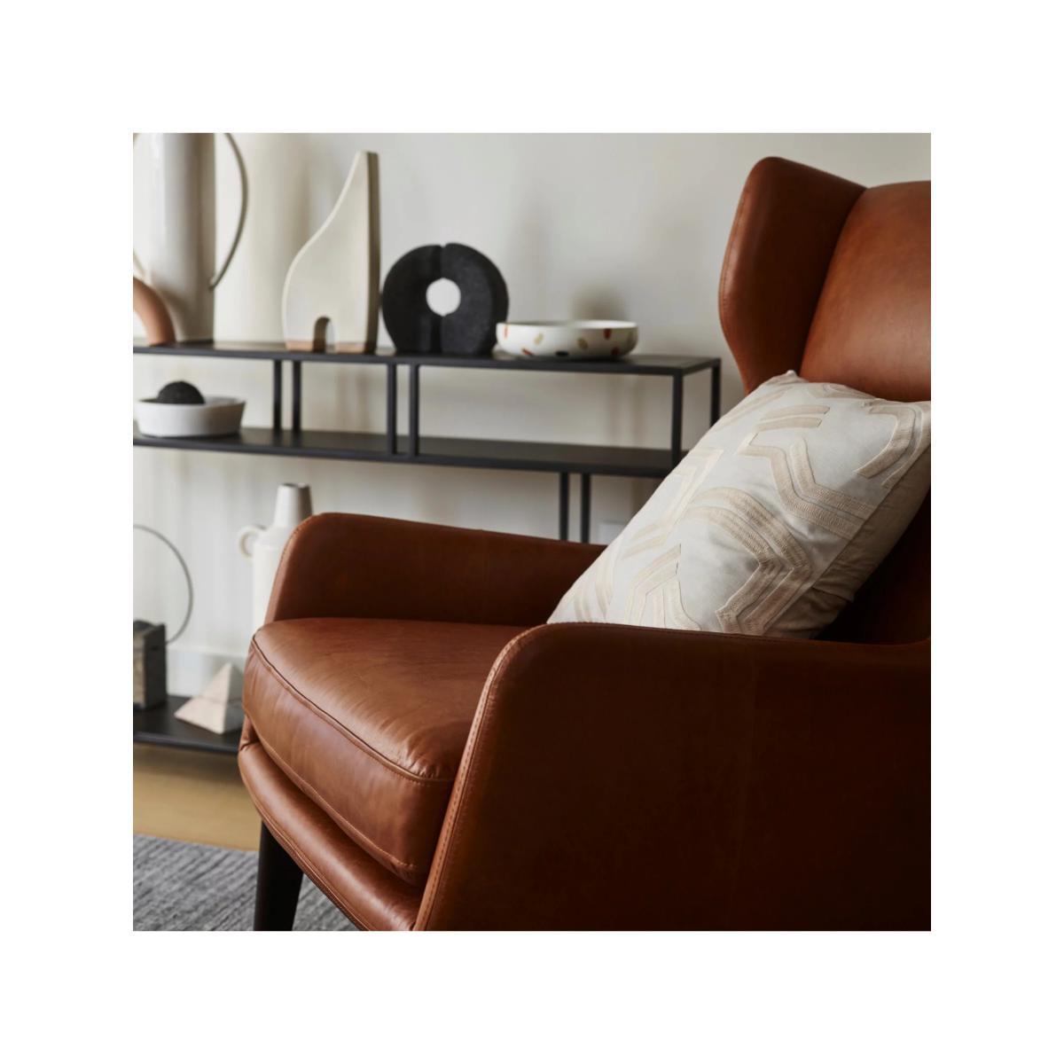 I love this armchair for its timeless saddle leather that adds warmth and character to any space. It works particularly well in mid-century modern or contemporary interiors, where its clean lines and rich leather tone can be showcased. Practical styling tips include pairing it with textured throw cushions or a cosy throw to soften its structured silhouette. It’s a versatile piece that can serve as a statement accent in a living room corner or as a sophisticated reading nook seat. Its durable leather not only looks great but also ages beautifully, making it a practical investment piece for both residential and commercial settings.