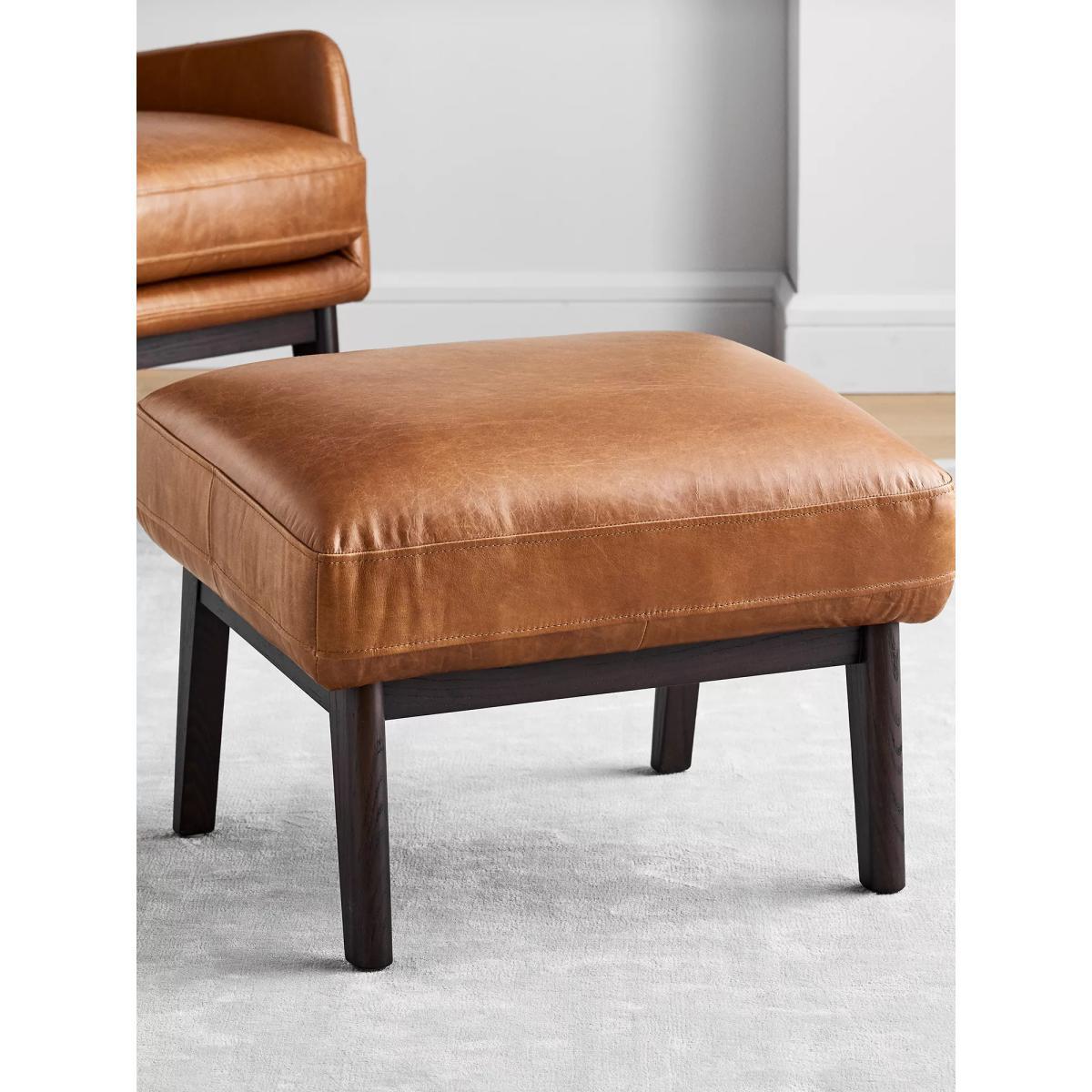 Product Information Covered in a premium natural leather, the Ryder Ottoman from west elm stands on solid eucaplyptus wood legs. Want to see it first? You may want to see and get a feel for this piece of furniture in one of our shops before ordering. We'll be able to tell you where the range you'd like to view is on display.