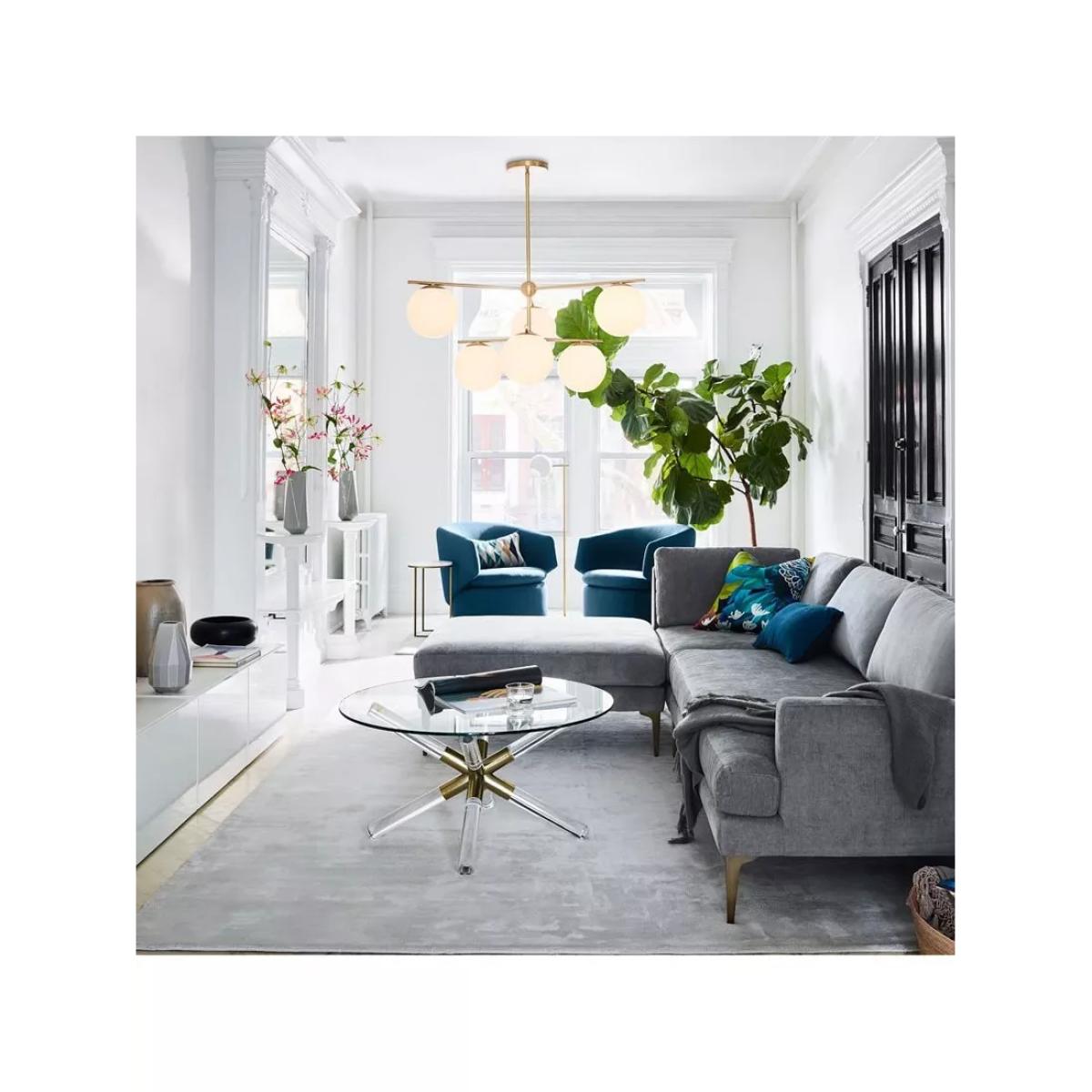 Elevated and modern, the Sphere + Stem Chandelier comes with an adjustable rod so it can be modified for your ceiling height. The light features six glass globes on elegant metal arms in a glamorous finish. Simplicity has never shined so bright.