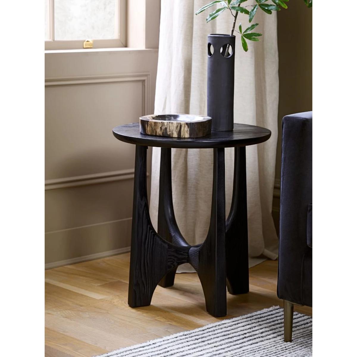 I love the West Elm Tanner Hemlock Wood Side Table for its sculptural form and sleek black finish, making it a versatile piece that can add a touch of modern sophistication to various interiors. It works particularly well in contemporary, minimalist, or industrial spaces, where its bold silhouette can stand out. Practical styling tips include layering it with a small statement lamp, a stack of books, or a decorative tray to elevate its look. It’s also a great option for cosy corners or beside a sofa or bed, offering both style and functionality without overwhelming the space.
