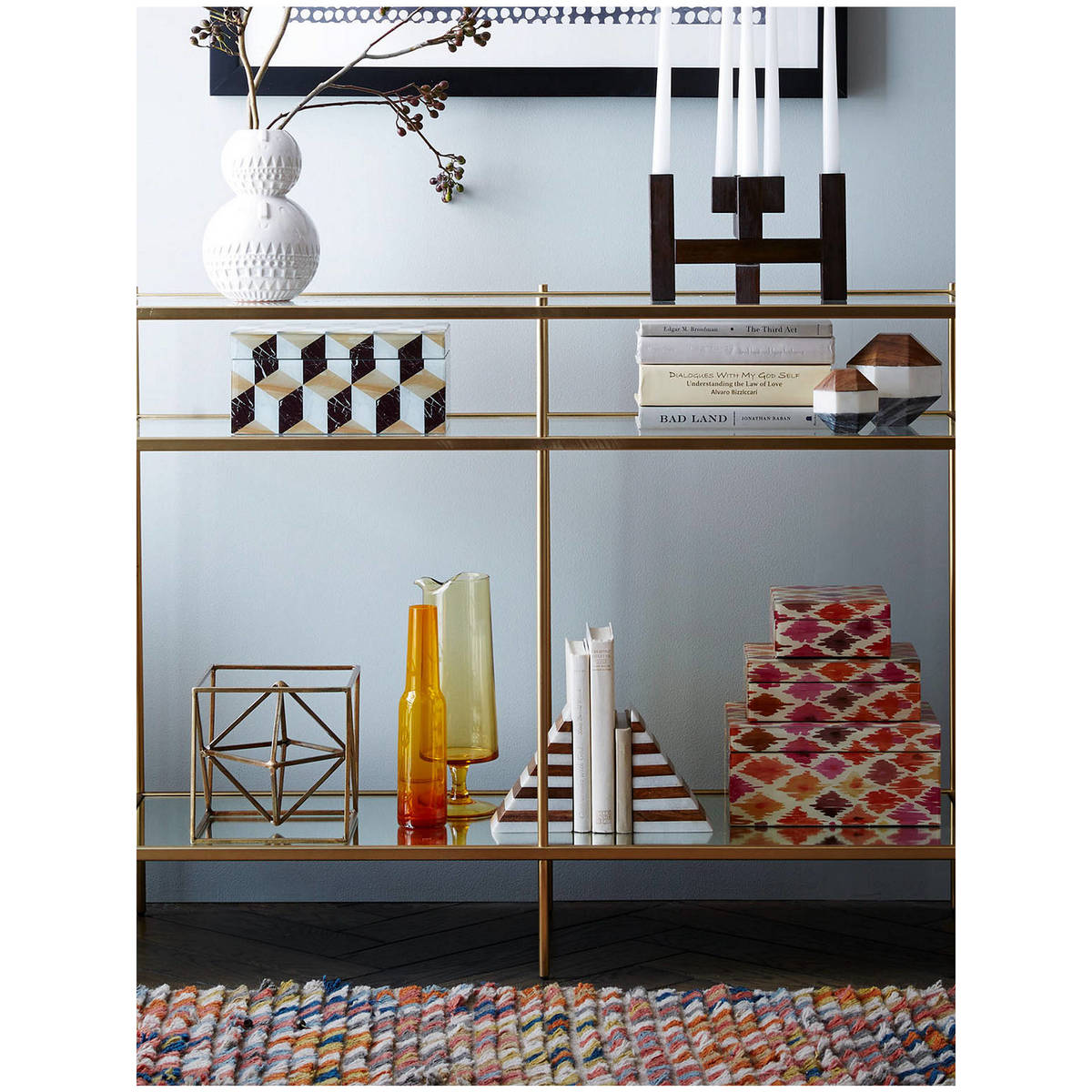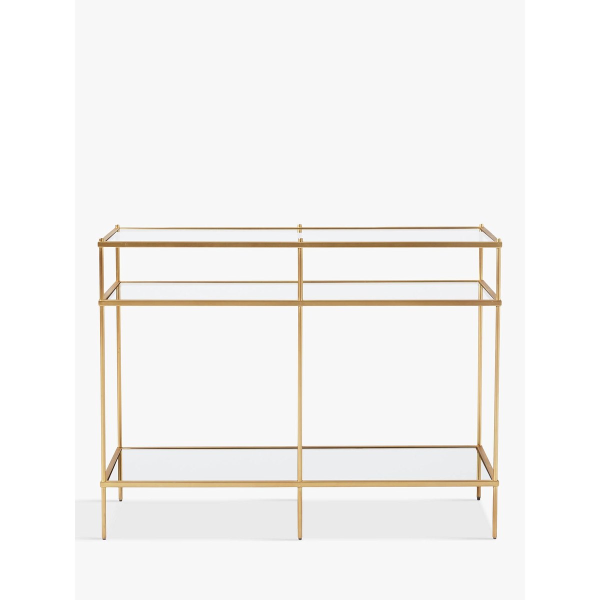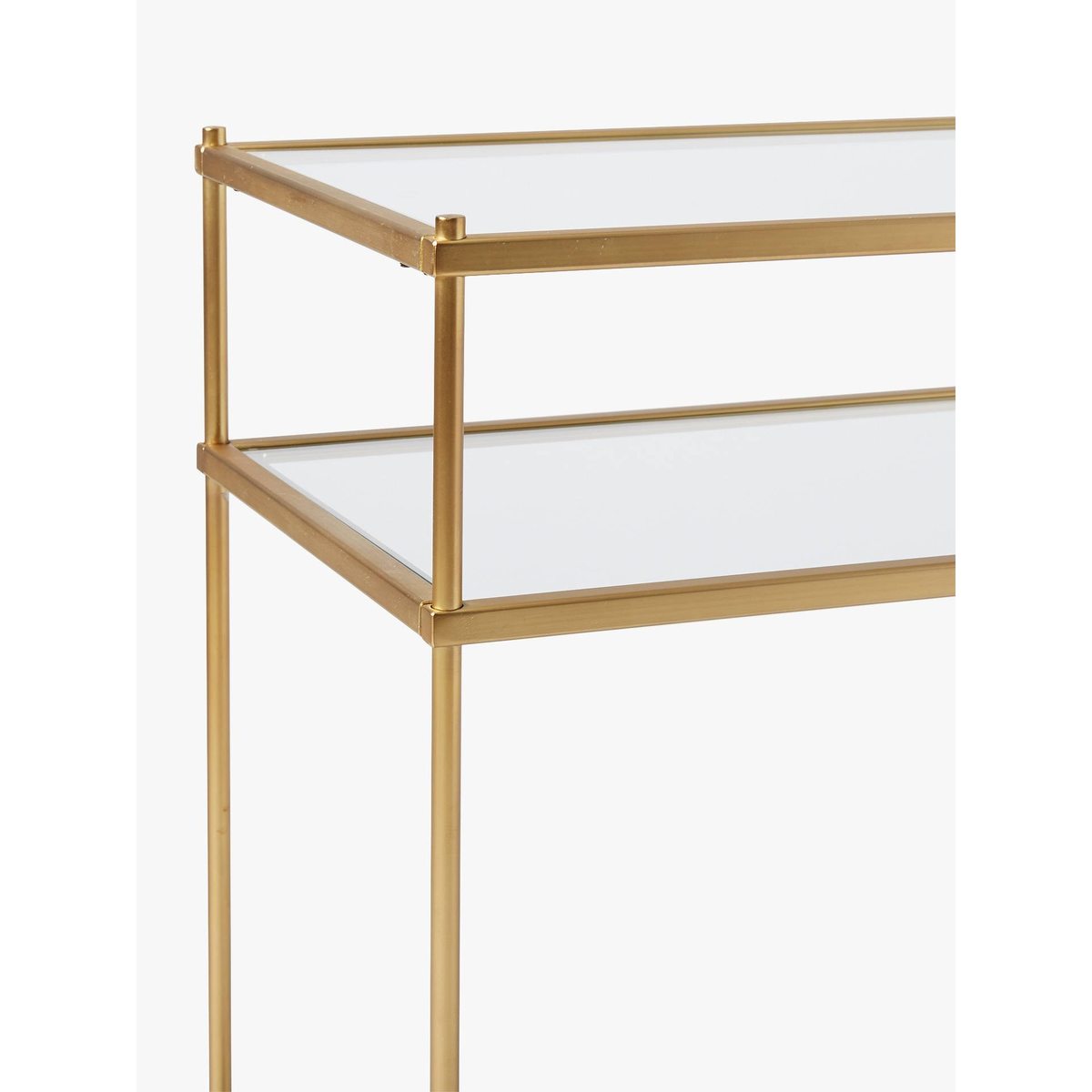 Inspired by art deco styling and design, this striking console table will give even small rooms a sense of light and space. A clear glass top and shelf provide ample surface to display decorative items, while a mirrored bottom shelf reflects the light to show these off to stunning effect.