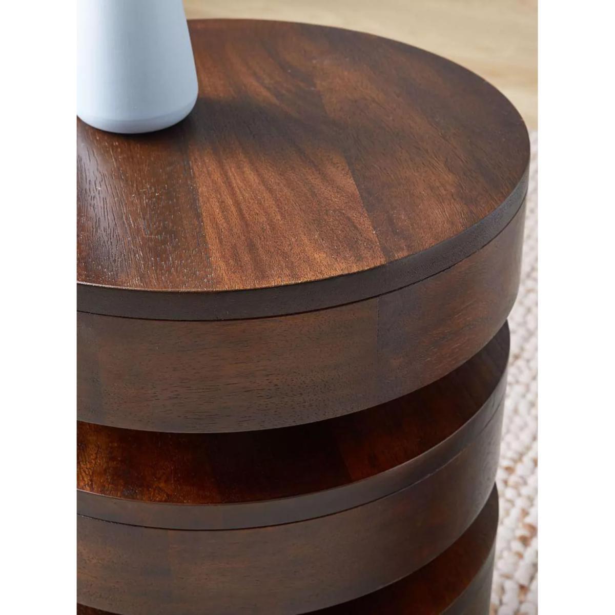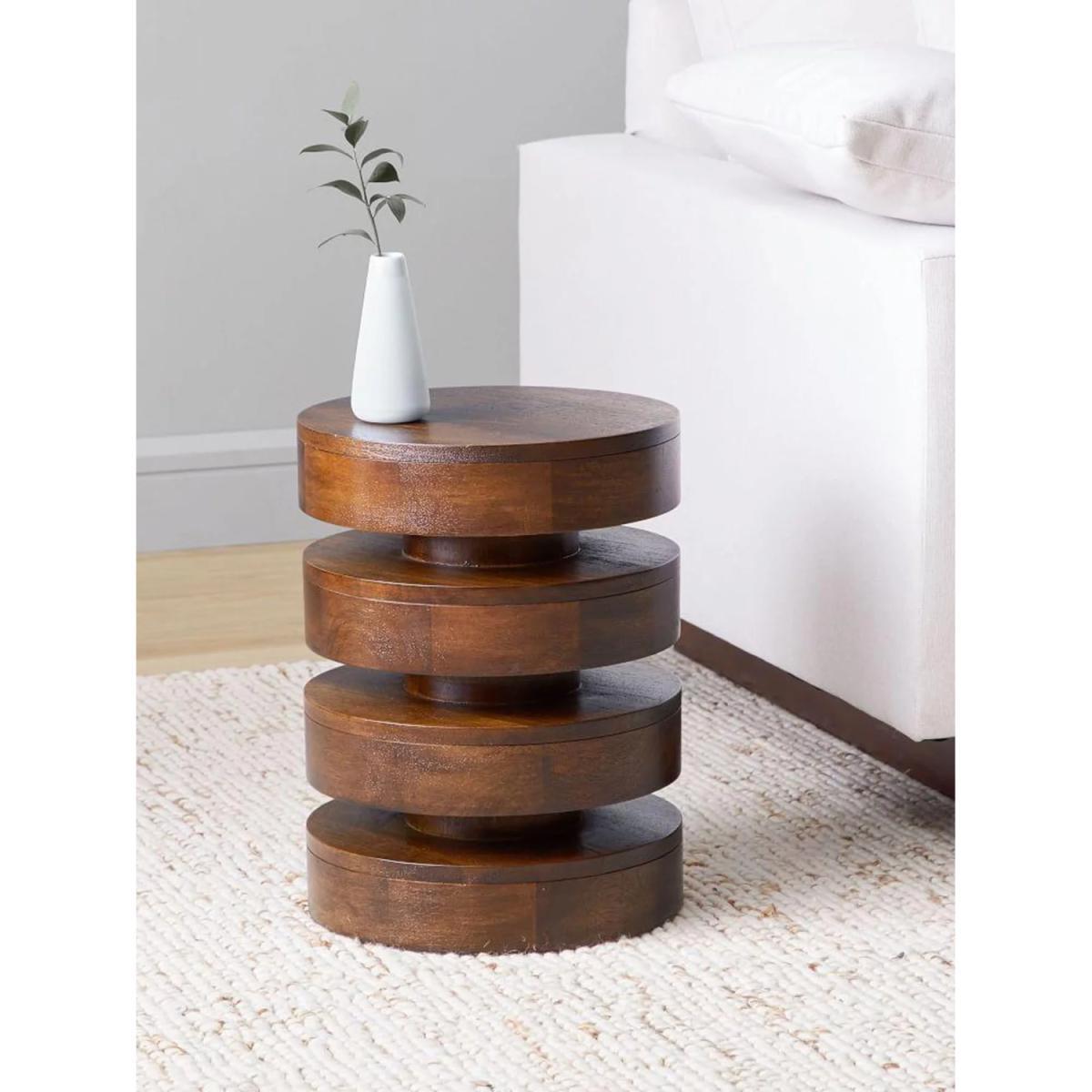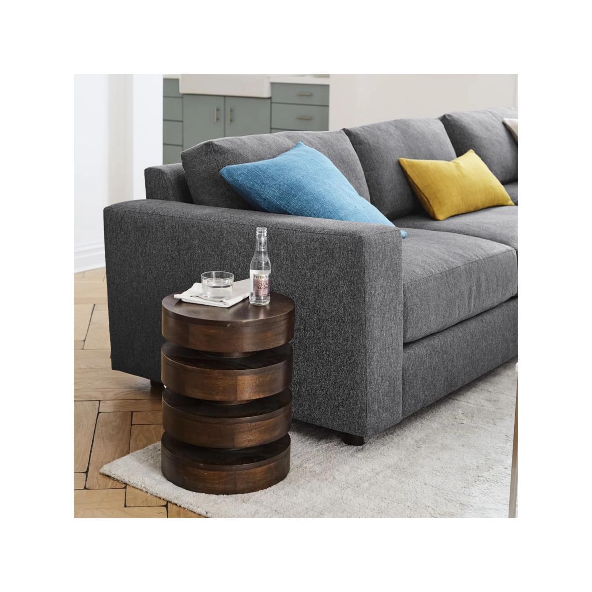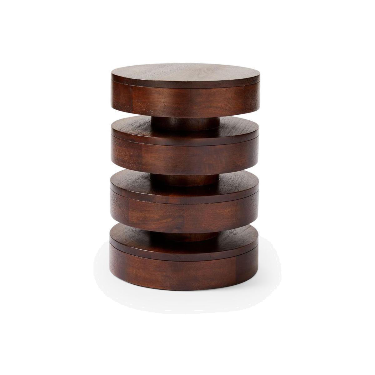 A sculptural design, the Totem round side table from west elm resembles a stack of floating discs. Light in weight and easy to move, this sturdy accent piece can display vibrant plants next to the window or double as a drinks table for parties and game nights. Made of kiln-dried, reclaimed solid and engineered wood, the table has felt pads on the base to protect floors. Want to see it first? You may want to see and get a feel for the furniture in one of our shops before ordering. We'll be able to tell you where the range you'd like to view is on display.