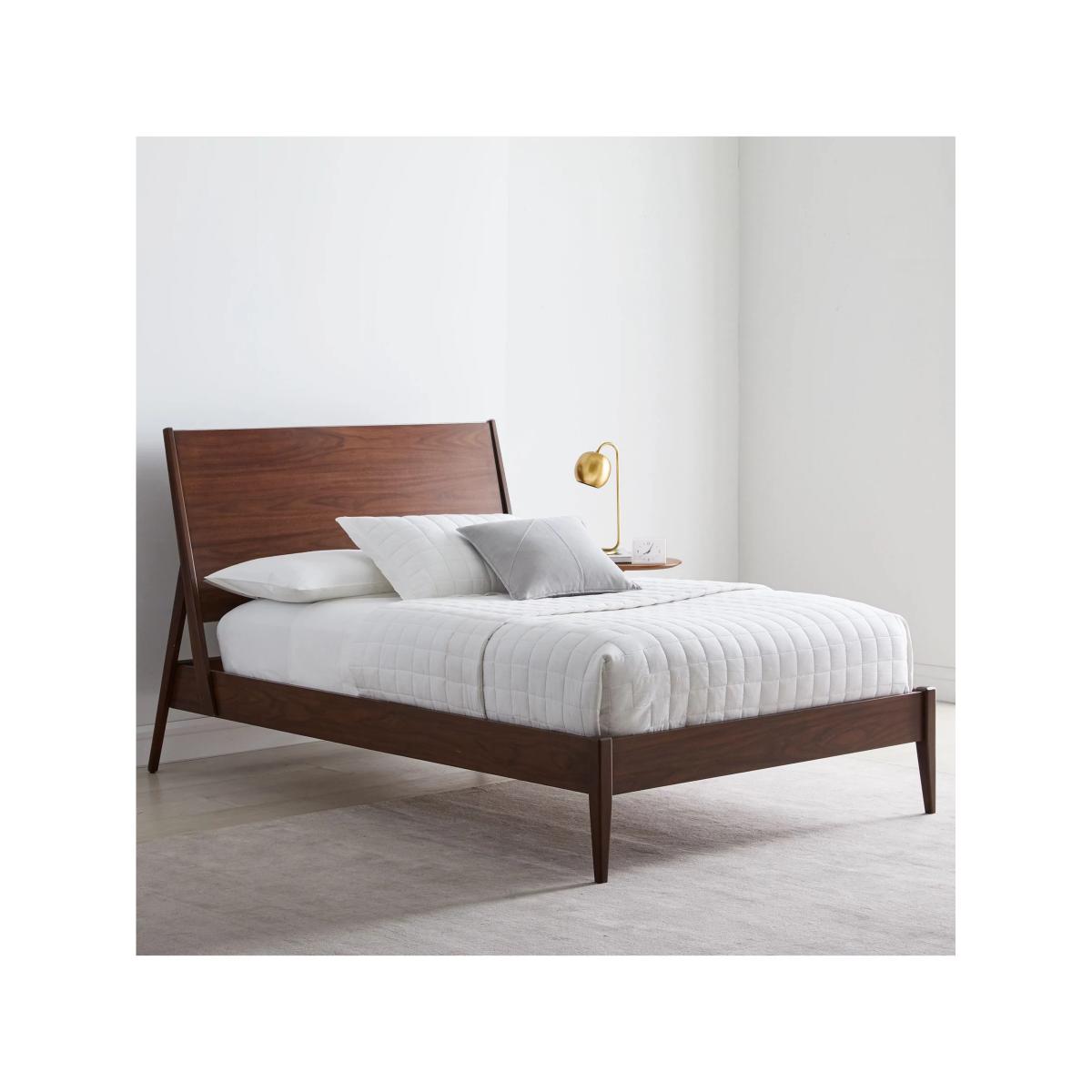 Made from responsibly sourced, FSC Certified timber, this bed frame is incredibly sturdy and hard-wearing. The headboard is set back at a slight angle, allowing you more room to lean back while reading or watching TV in bed. The design is sleek, clean-lined and has a natural warmth that will also suit Mid-Century inspired settings. Made from kiln-dried solid mahogany wood on the frame and legs, an engineered wood headboard and the footend and siderails are covered in walnut wood veneer. Want to see it first? You may want to see and get a feel for the furniture in one of our shops before ordering. We'll be able to tell you where the range you'd like to view is on display.