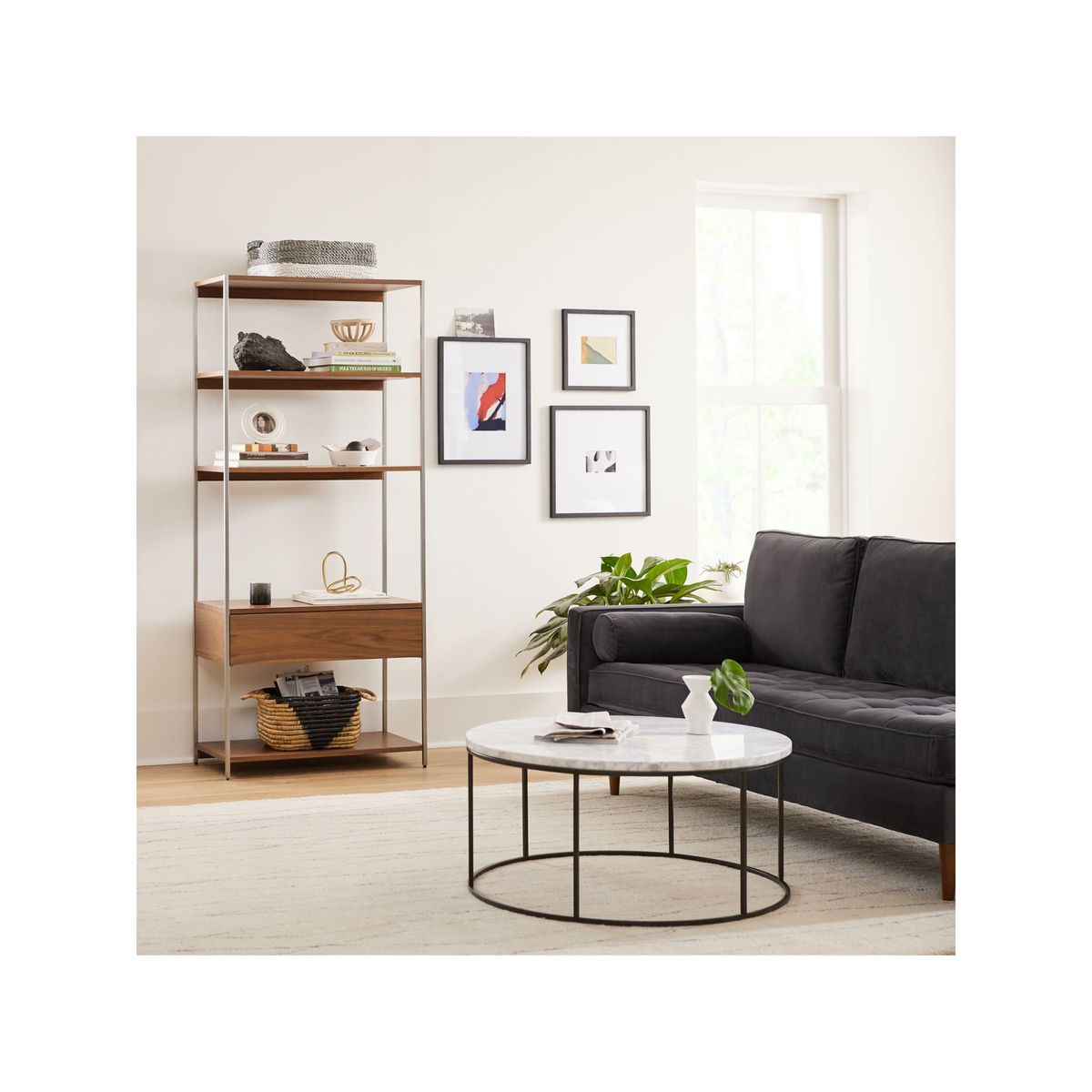 This spacious bookcase from west elm is made from sturdy white cedar and coated with a walnut veneer that brings out the pattern of the wood grain. There's a useful drawer for storage and each shelf offers a weighty maximum load of 21kg. The brushed nickel finish of the metal frame gives the design a soft, industrial style.