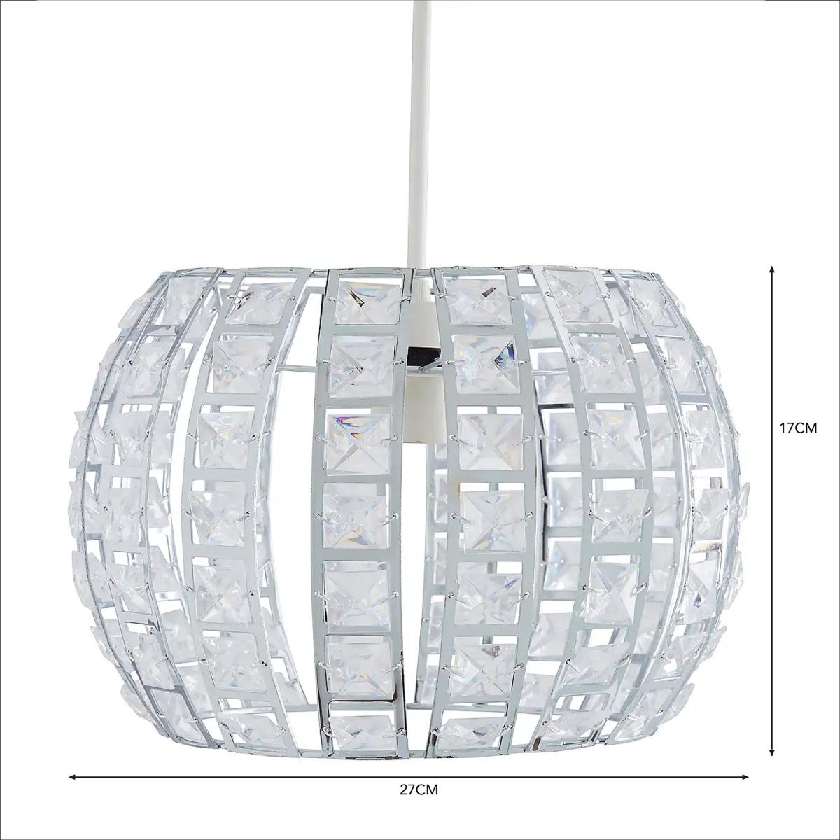 Fashioned with slightly curved vertical strips of acrylic clear jewels, this unique ceiling pendant will bring an art deco, sophisticated feel to your interior. Please note that BC GLS 70 Watt/60 Watt/11 Watt bulbs are recommended. Bulbs are not included with this product.