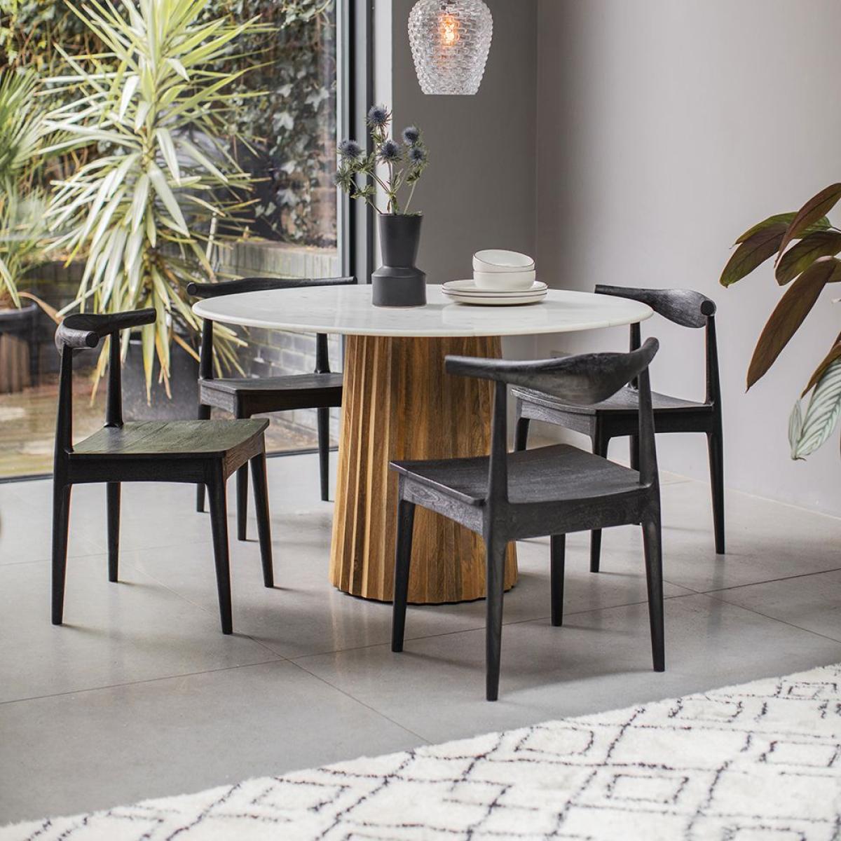 With plenty of room to seat four, our new Westbourne Dining Table combines the trend for organic timber pieces with a beautiful natural stone. In a choice of a black or natural stained mango wood base with white marble top, the circular table allows everyone to socialise easily and it’s perfect for family dining as well as entertaining friends. We think it looks great in a dining room as well as a kitchen-diner or larger open-plan space.