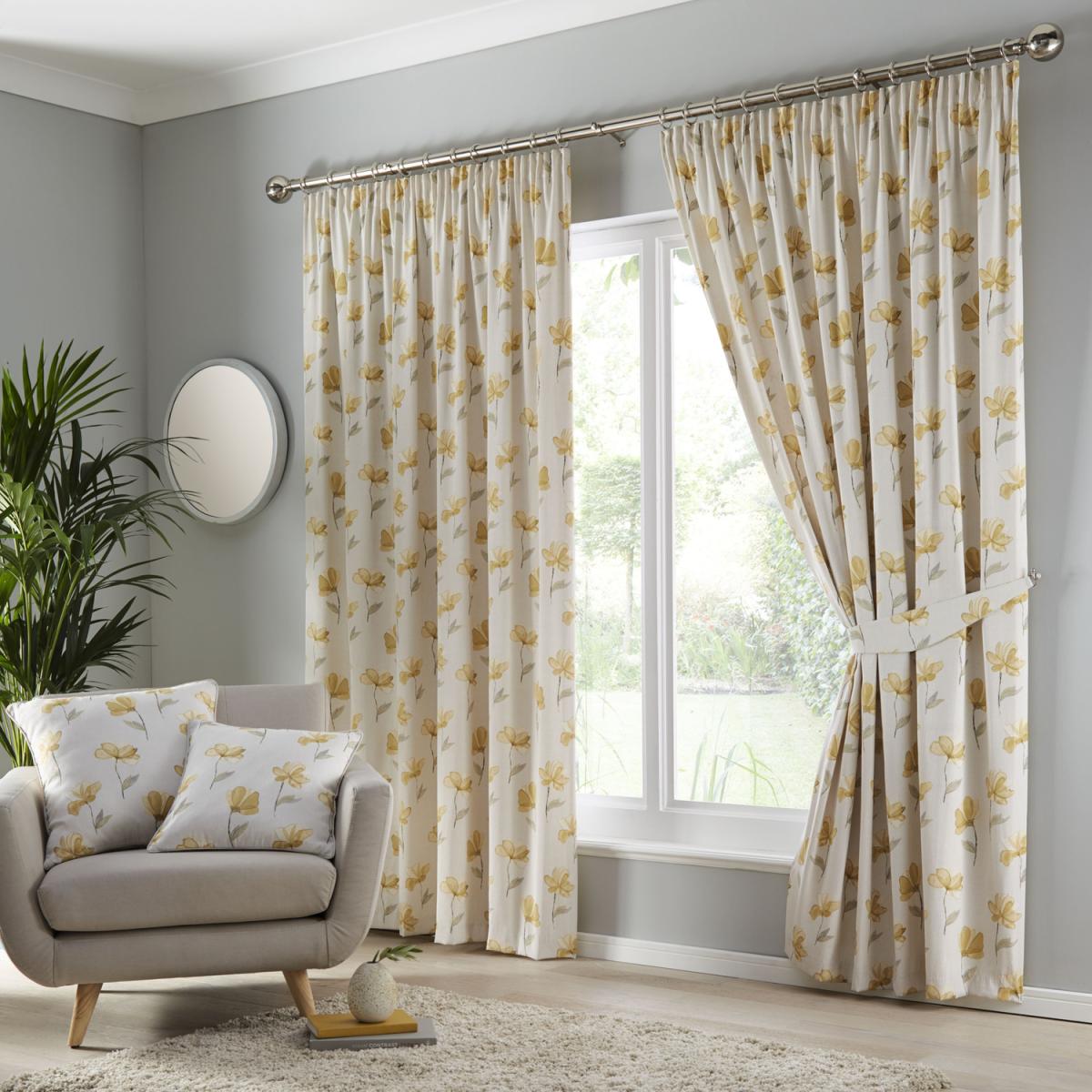 Westbury pencil pleat curtains add the ultimate sophistication to any space. In a fresh floral print, the curtains are natural background that helps to complement the delicate, yet simple flower.