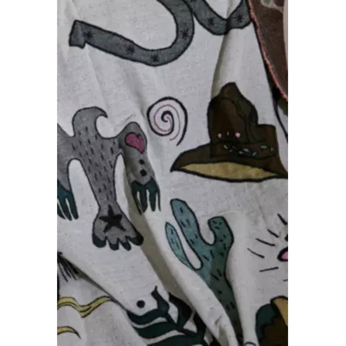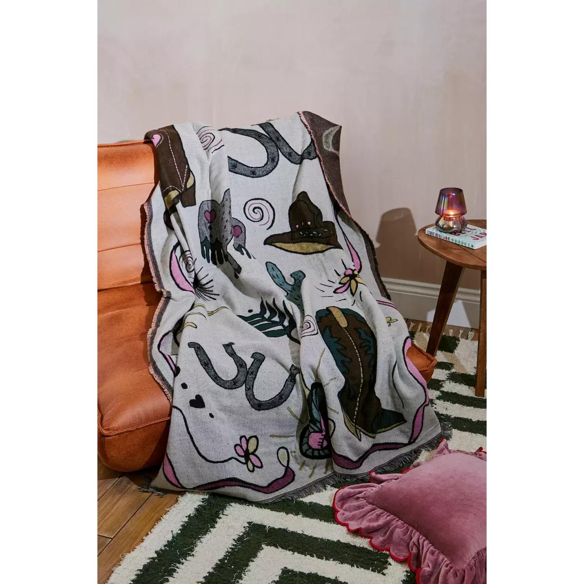 I love the Western Doodle throw for its playful, artistic design that instantly adds a touch of fun to any space. It works particularly well in eclectic, boho, or casual interiors where a mix of colours and patterns can shine. Practical styling tips include draping it over a sofa or bed as an accent piece, or folding it neatly over a chair for easy cosy access. Its bold, illustrative motifs make it a great focal point in neutral or pared-back rooms, adding character without overwhelming the space. Pair it with textured cushions or layered throws to create a welcoming, layered look that invites comfort and personality.