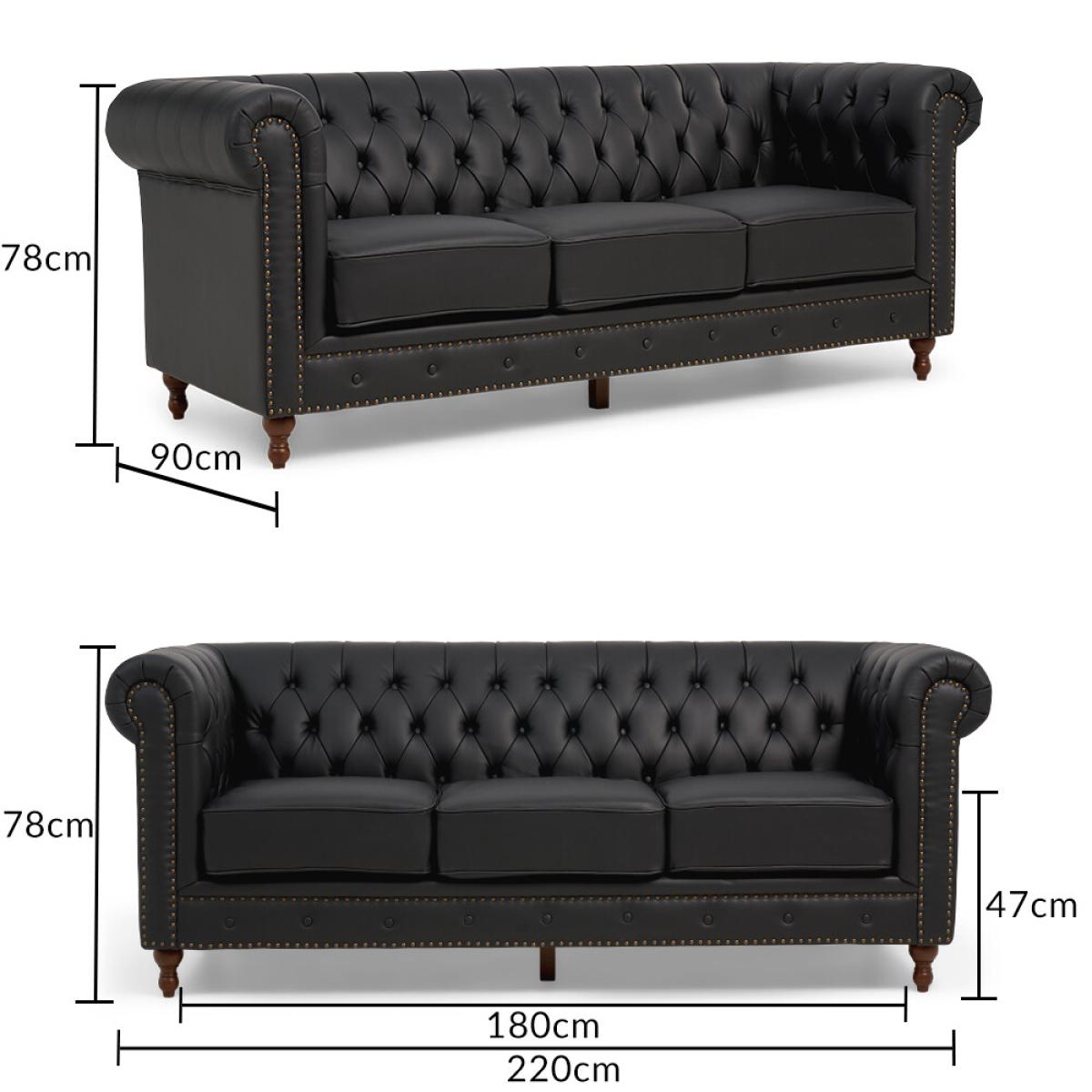 Westminster Chesterfield Black Leather 3 Seater Sofa