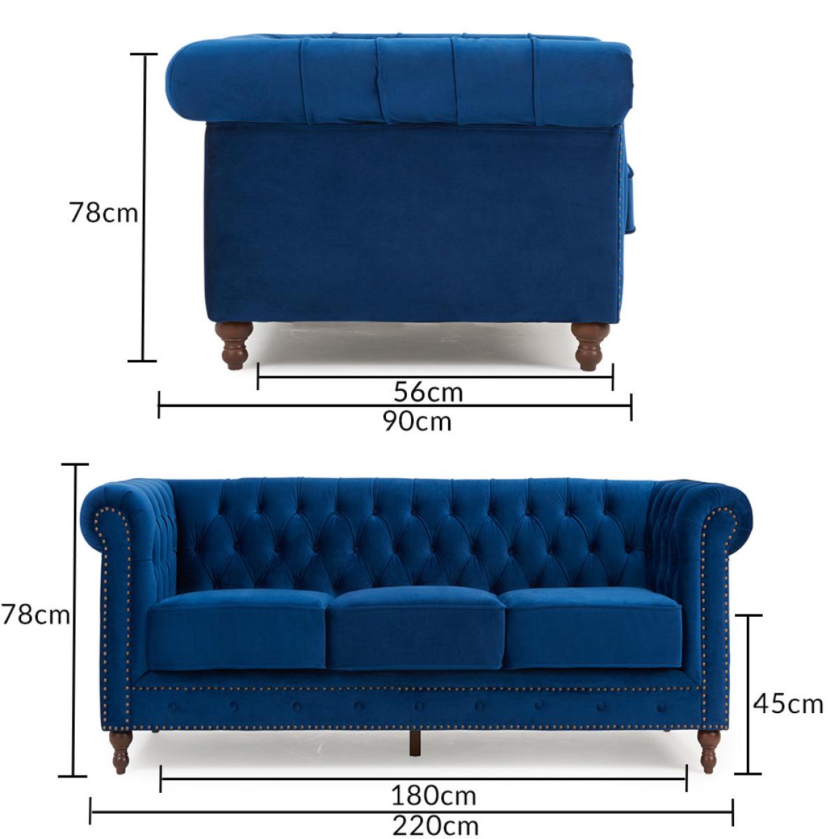 Westminster Chesterfield Blue Velvet 3 Seater Sofa