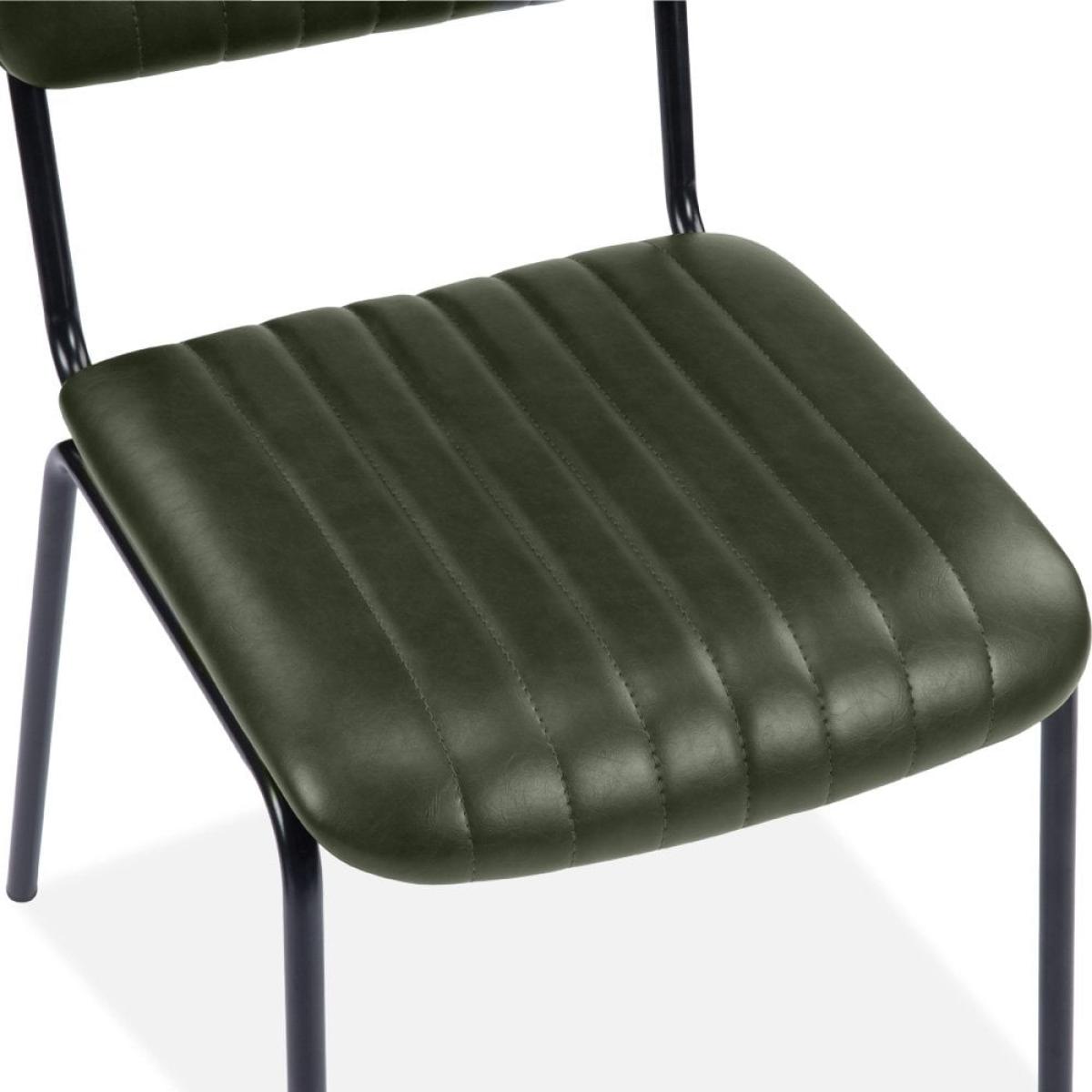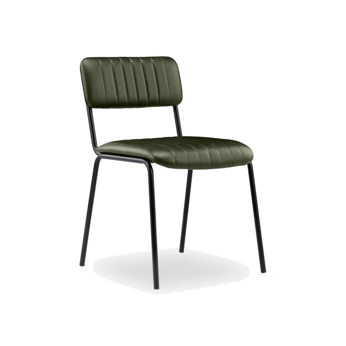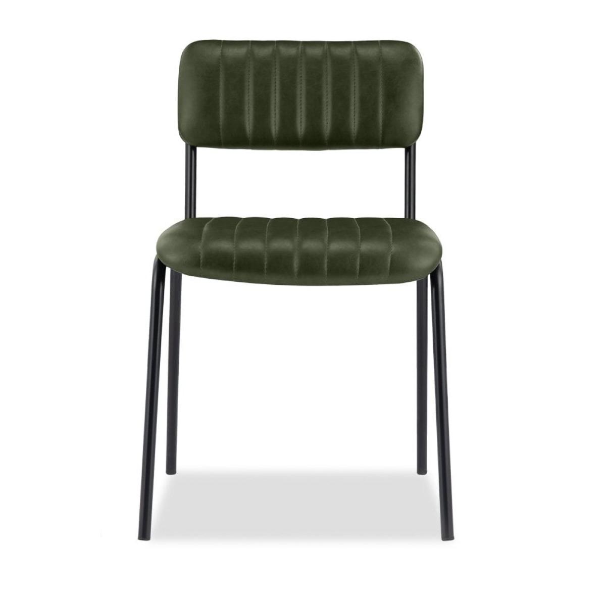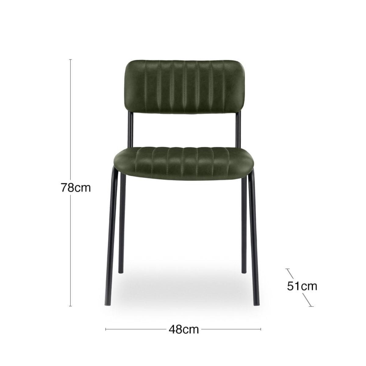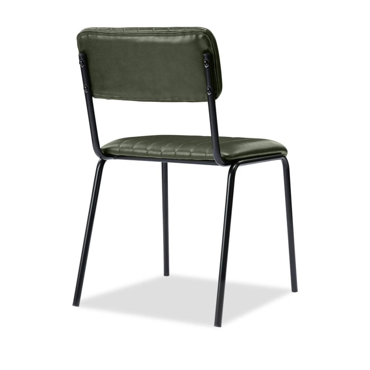 For the vintage industrial aesthetic, the Weston Stackable Dining Chair eludes natural warmth and undeniable retro charm. The faux leather seat and backrest in vintage green with stitched detailing sit on a sturdy black metal frame for a combination of robust design and effortless style. The Weston Chair range can be stacked, ideal for utilising your space.