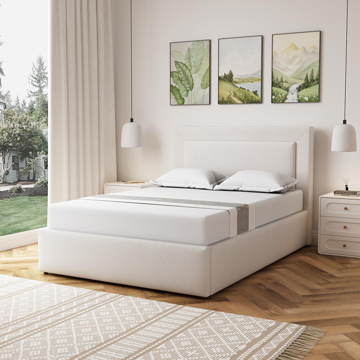 Elevate your bedroom with the sophisticated Weston Fabric Upholstered Ottoman Double Bed Frame, a perfect marriage of contemporary style and ingenious storage. Expertly wrapped in a beautiful linen fabric, this double bed frame features a powerful gas lift opening mechanism, providing effortless access to a vast under bed storage area, making it the ultimate ottoman frame for keeping your space beautifully organised and clutter-free. Designed to perfectly fit a standard UK double 135cm x 190cm long mattress(please note, mattress not included), this bed is a stylish centrepiece for any room. With our promise of a straightforward, easy self assembly process and quick, efficient delivery, you can transform your bedroom with this stunning storage bed solution in no time.
