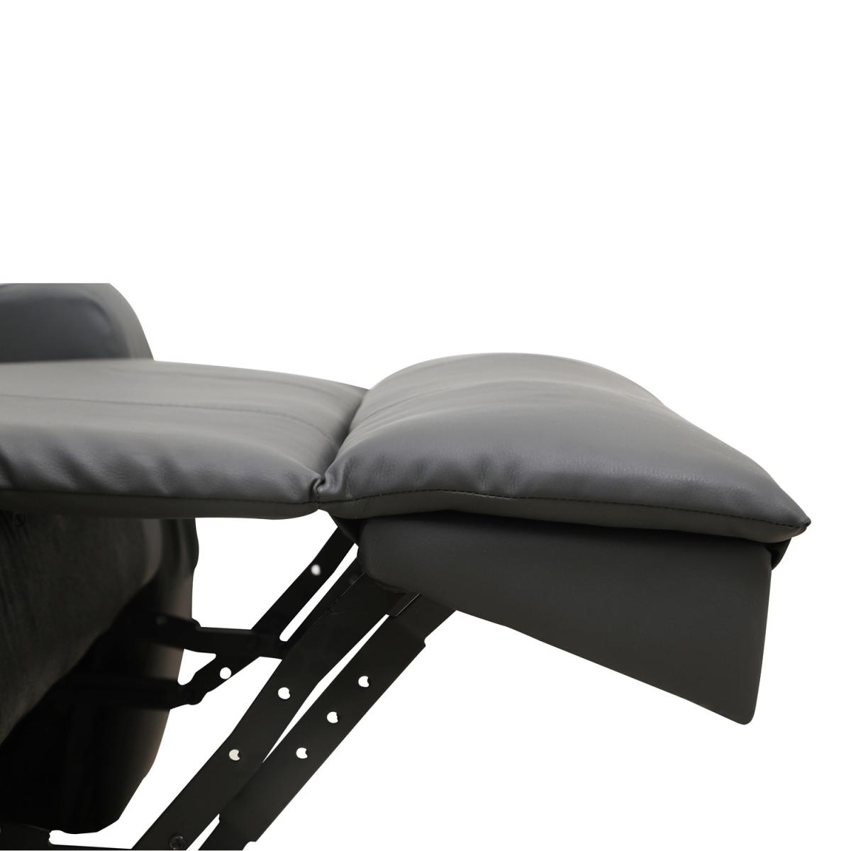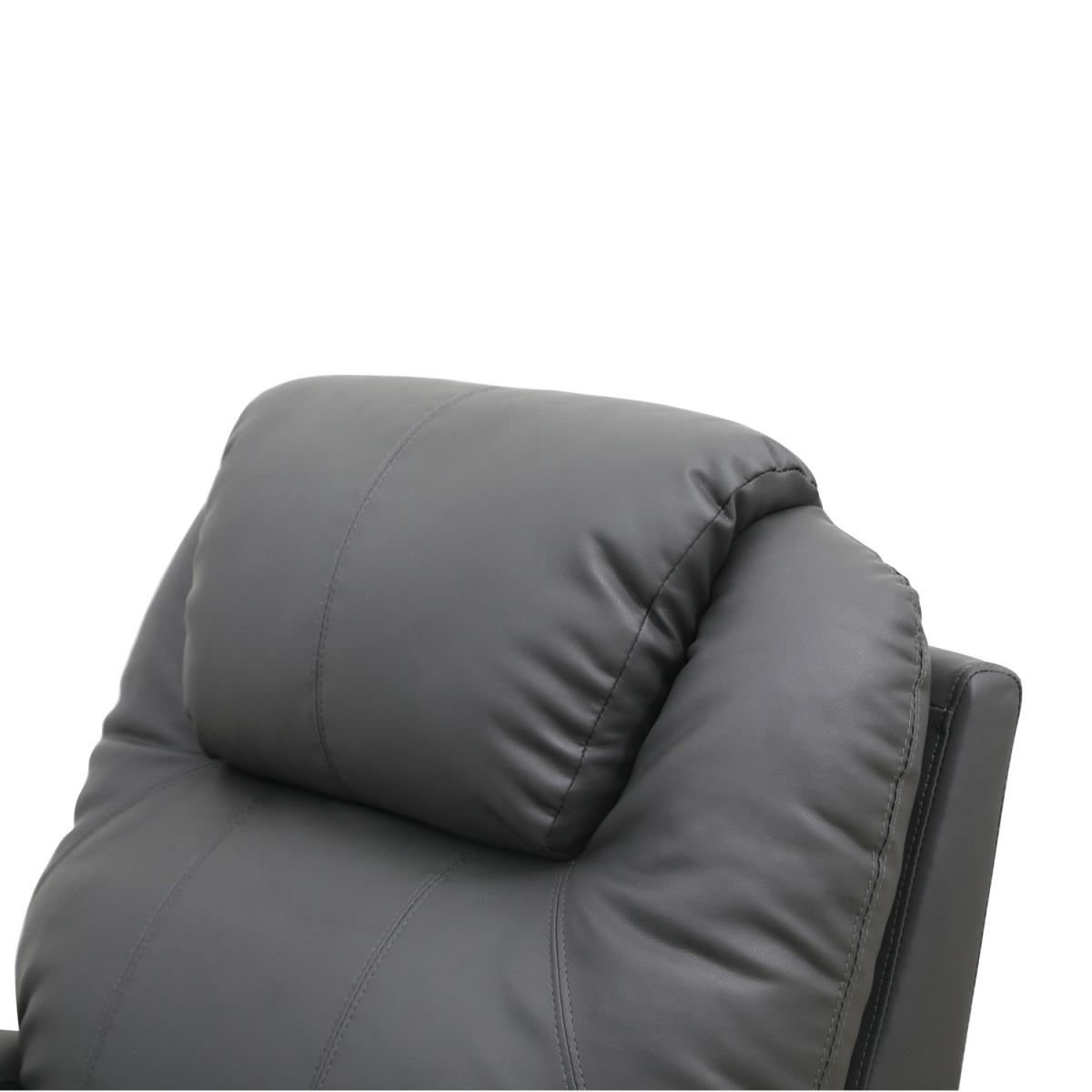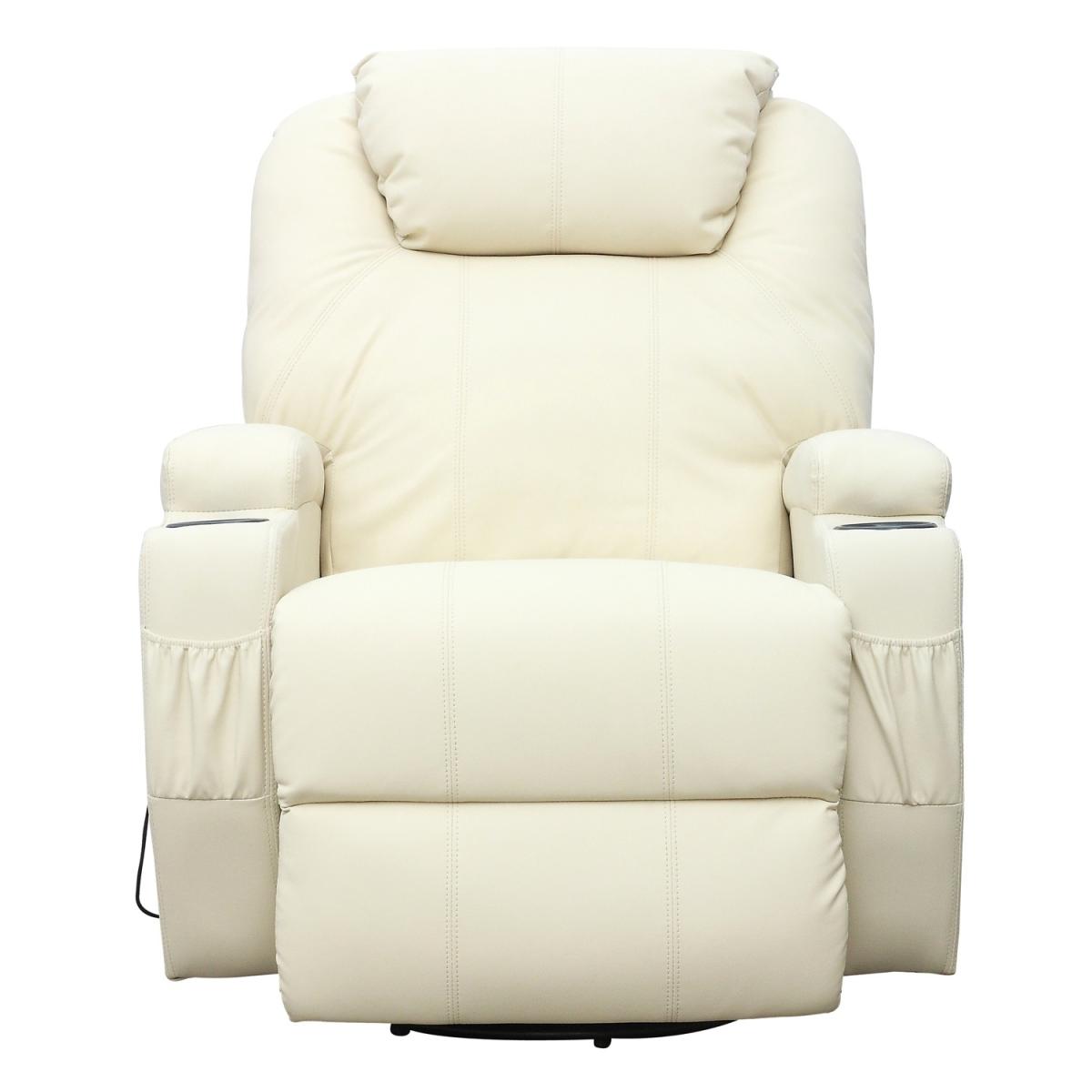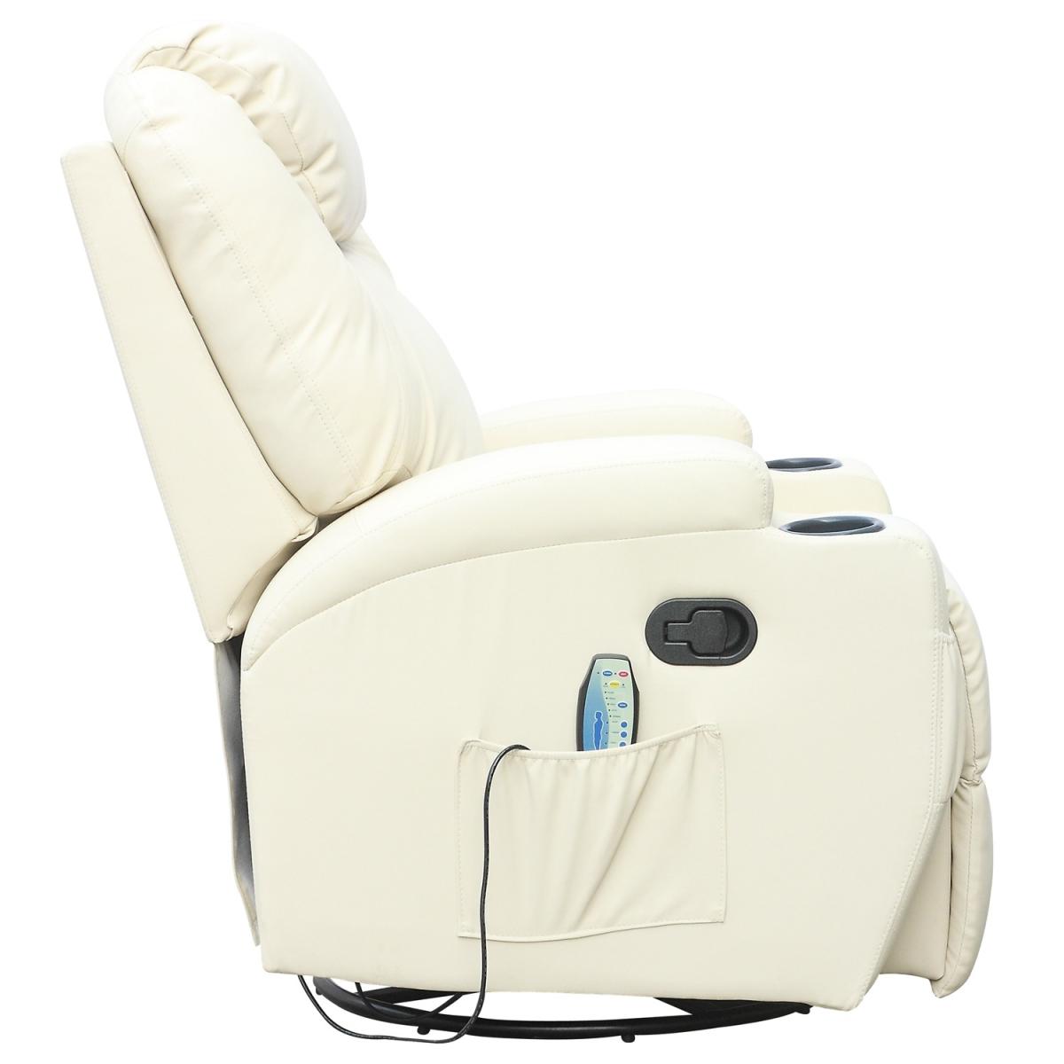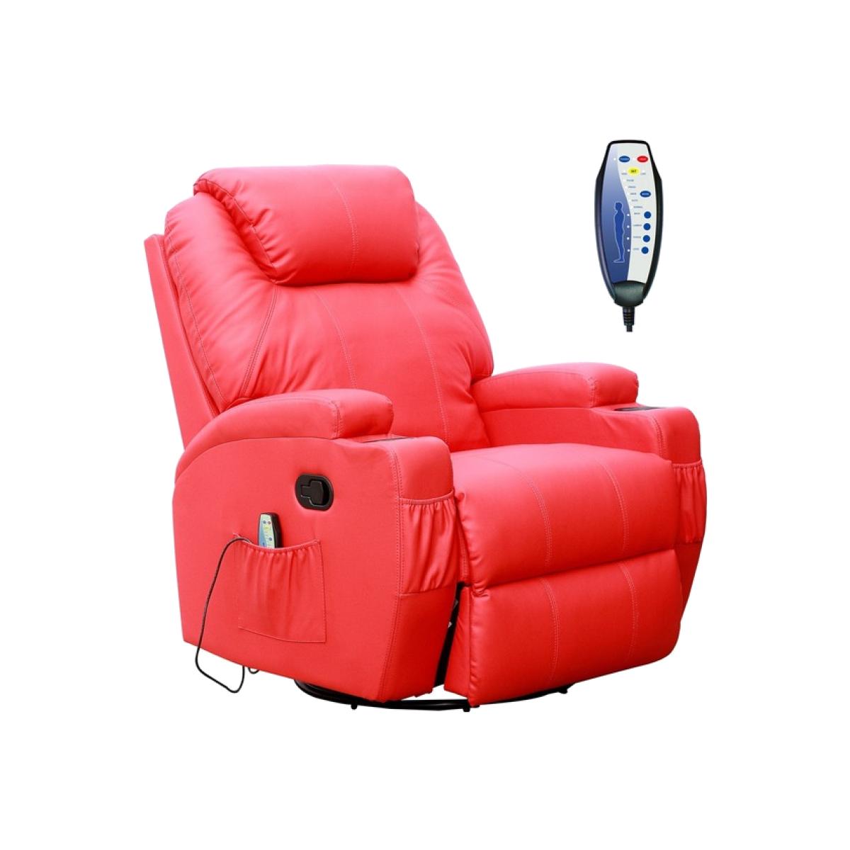 Pull the latch mechanism on the side turn the chair into a recliner and then you can apply the massage and heat just for relaxing or easing aches and pains and helping circulation. Additional functions are a 360-degree swivel and a backwards and forwards rocking action. Just for fun, the chair is fitted with a cup/bottle holder in each arm. Four pockets have been added for storage (Remote control or magazines). Swivel and rock function: Facilitated by an integral metal base under the chair. Easy to operate. Fully faced with thick bonded leather on the backrest and the seat. We do not use cheap PU or PVC (plastics) on the face of our chair.