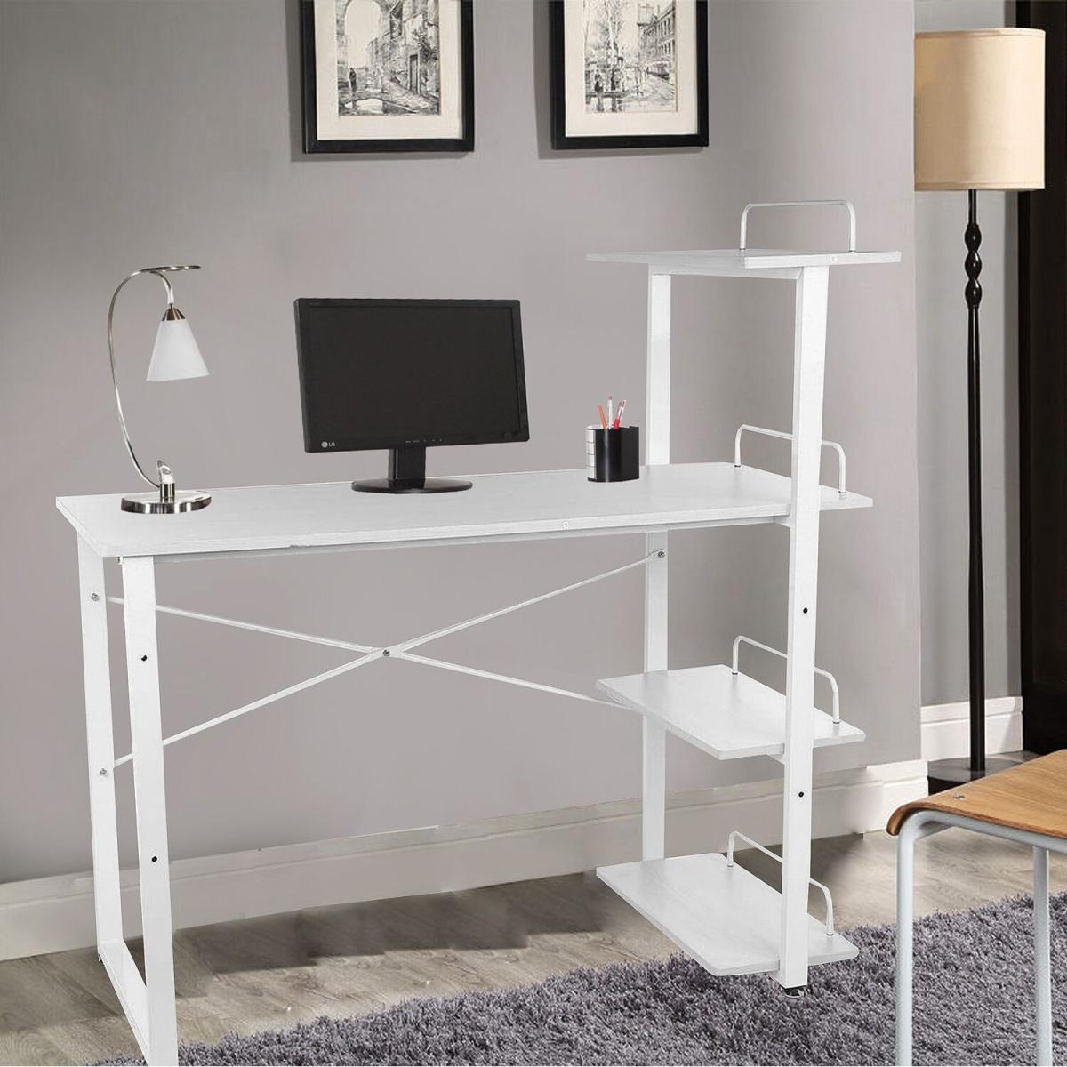 This is a perfect centrepiece for your home office or study. This fantastic desk will suit all of your business needs. With 4 tiers bookcase shelves with drop off design, you will have enough room to manage all your paperwork. It is ideal for home or office use, in order to ultimate your space you can simply put the desk at the corner. It is more durable than another slight steel desk and easy to assemble.